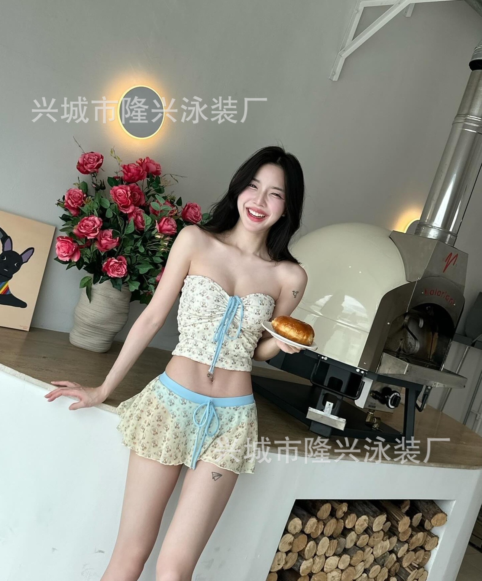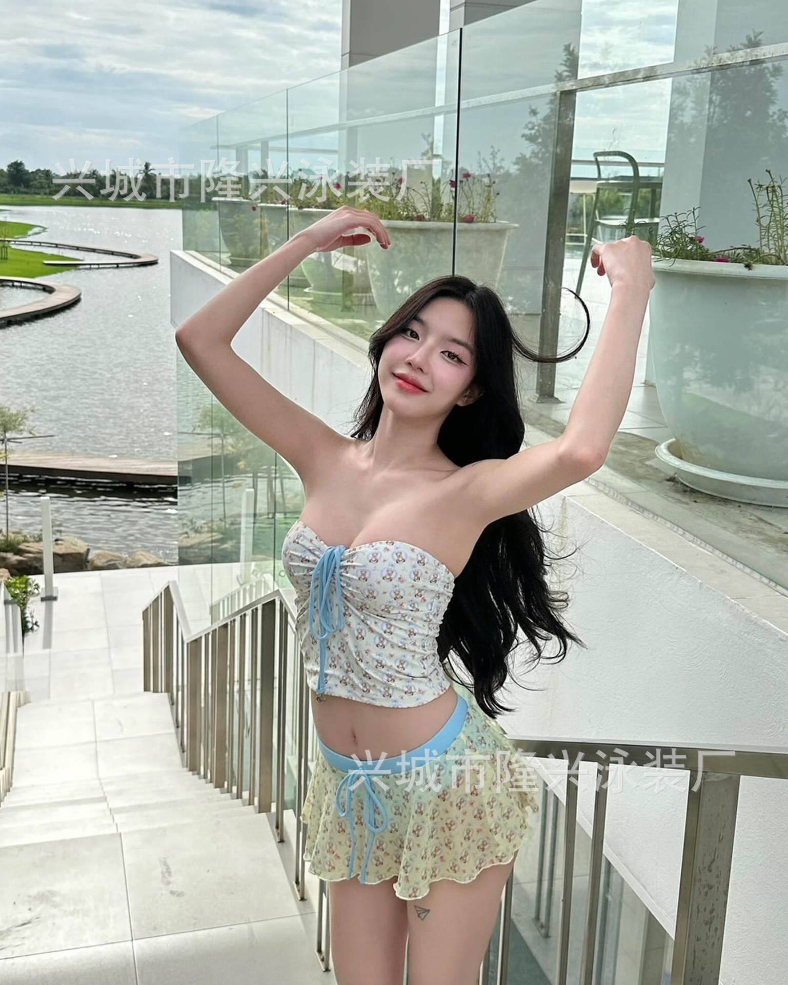 새로운 스타일 분할 수영복 여성 꽃 한국 튜브 탑 인 스타일 뜨거운 소녀 섹시한 달콤한 소녀 캐주얼 휴일 수영복스토어 가기