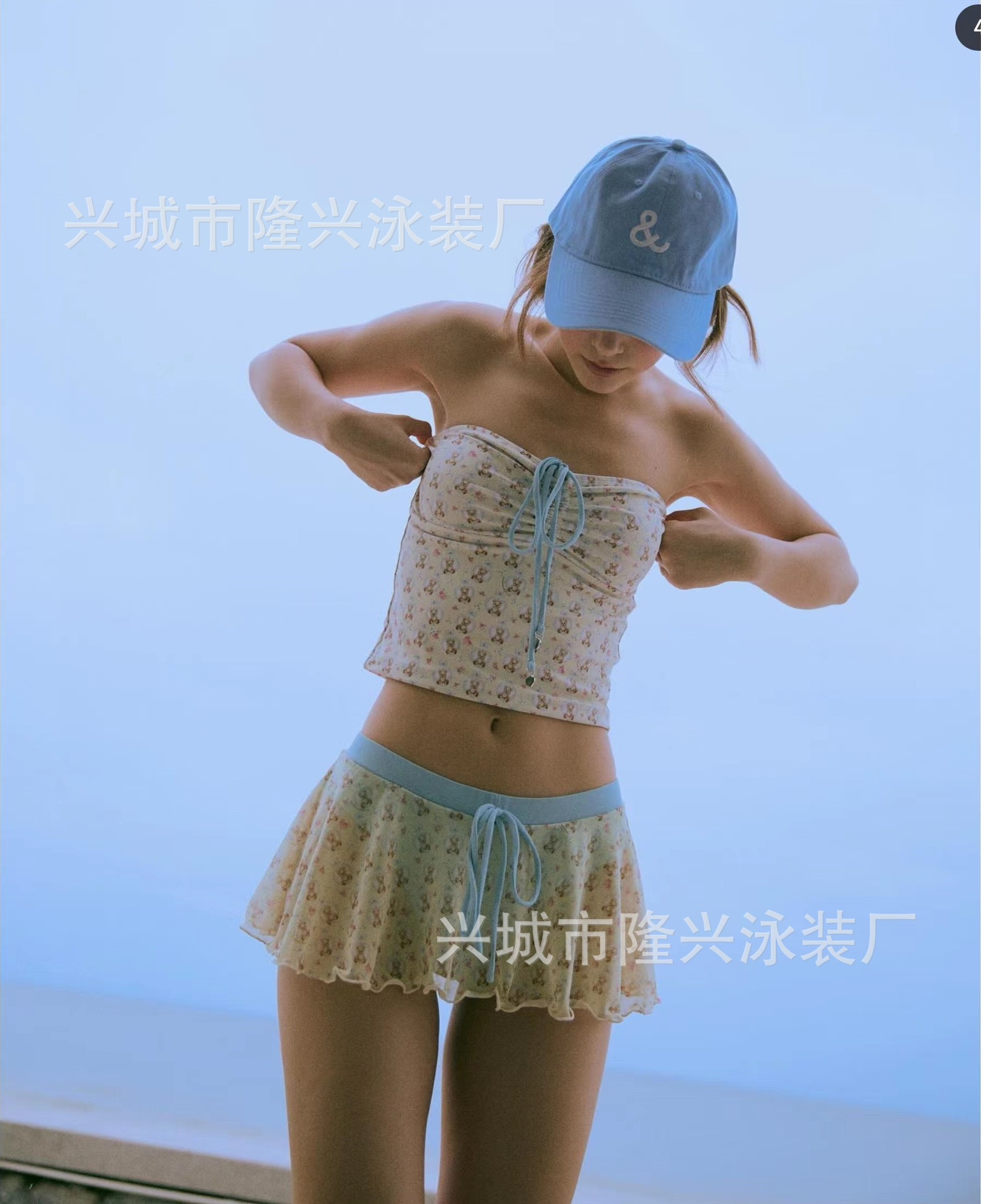 새로운 스타일 분할 수영복 여성 꽃 한국 튜브 탑 인 스타일 뜨거운 소녀 섹시한 달콤한 소녀 캐주얼 휴일 수영복