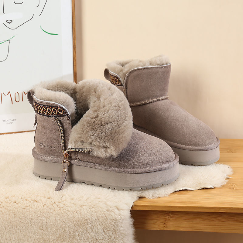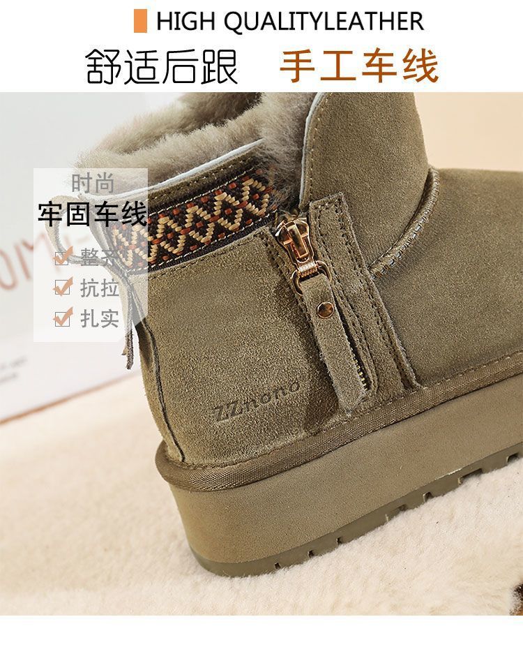 여성용 사이드 지퍼 스노우 부츠, 모피 일체형 벨벳 두꺼운 면화, 2024 핫 스타일 겨울용 다용도 짧은 면 부츠스토어 가기