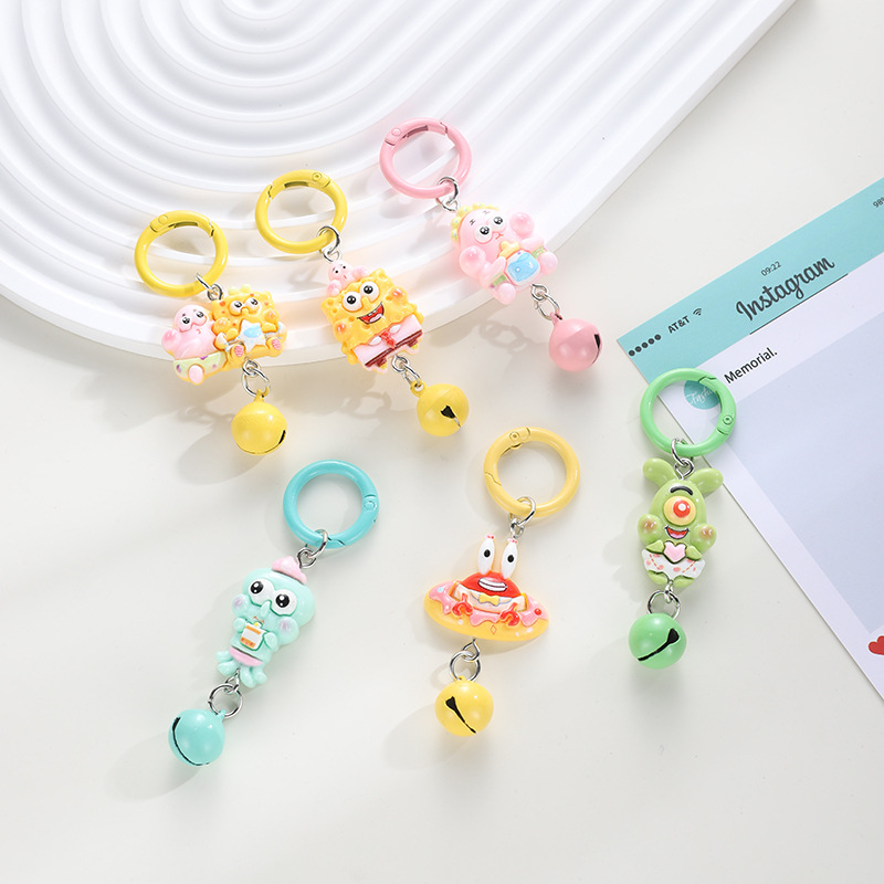 작은 카드 종 스폰지 밥 파이 스타 키 체인 귀여운 만화 펜던트 소녀 학교 가방 액세서리 선물 여자 친구
