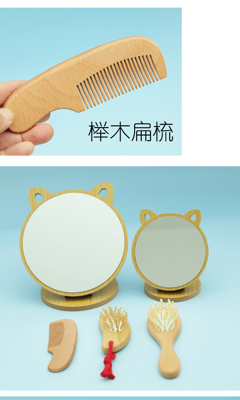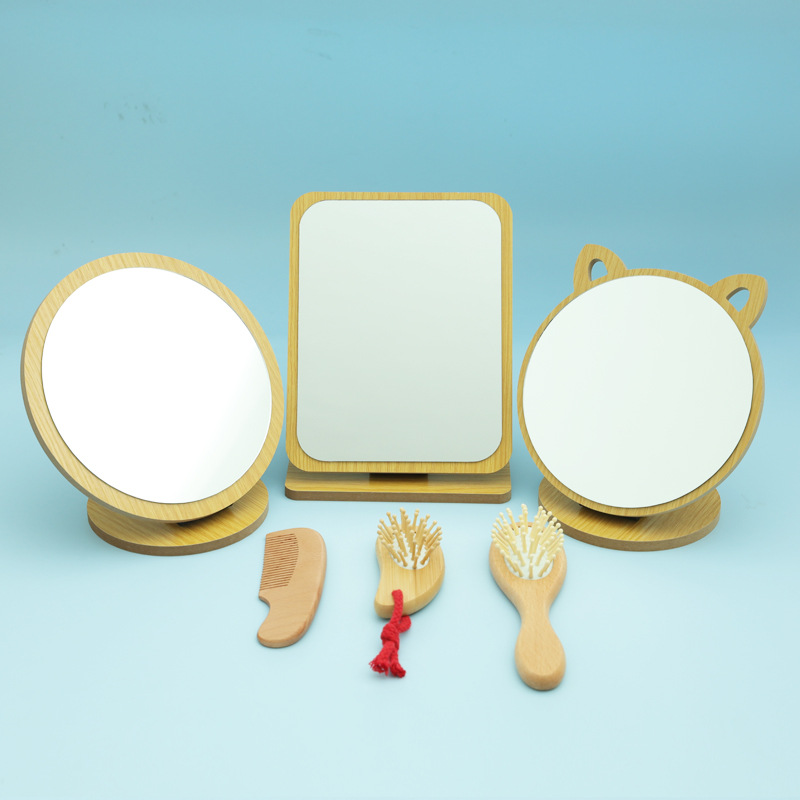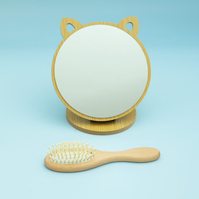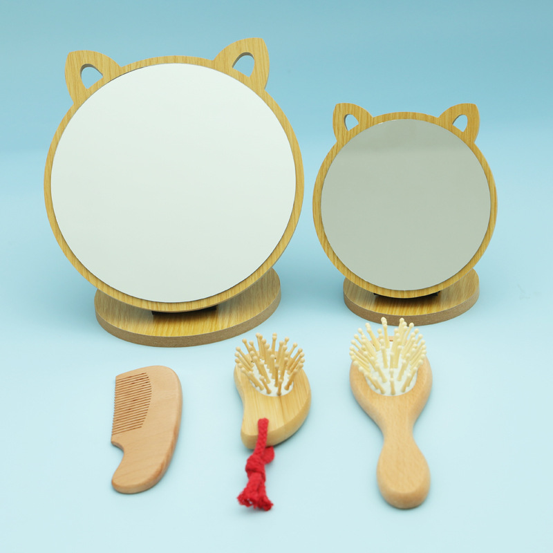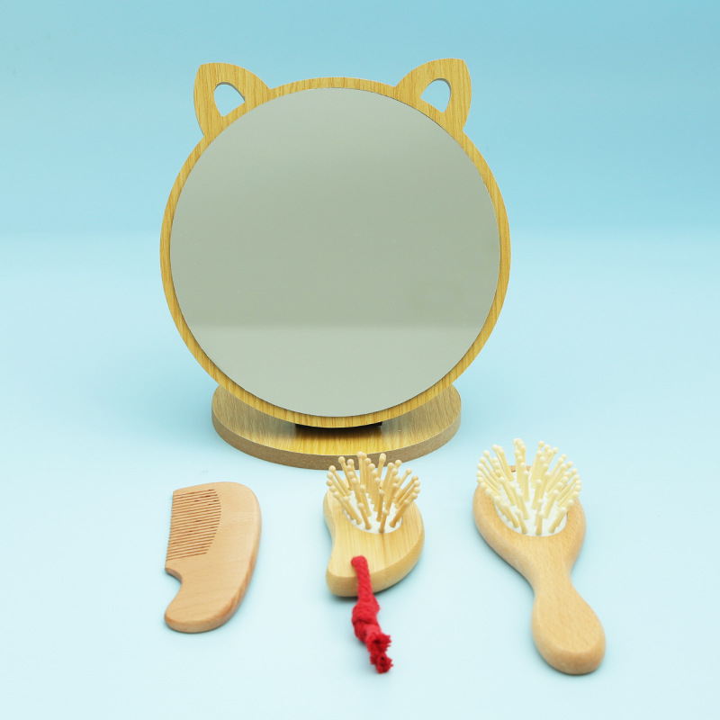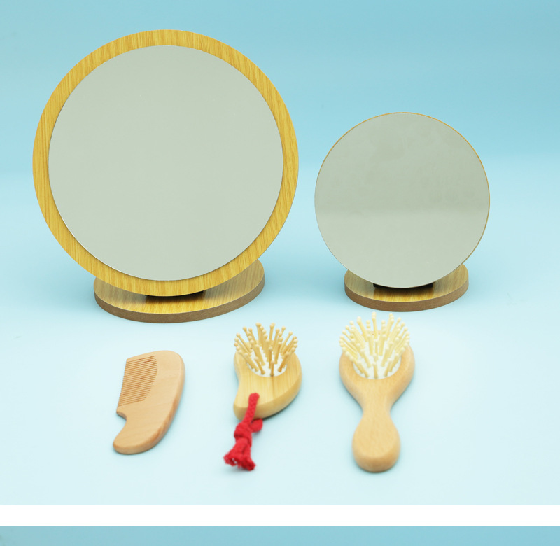 너도밤 나무 에어백 빗 몬테소리 몬테소리 교육 보조 드레싱 작업 일상 생활 공간 나무 거울 작은 빗 고양이 거울