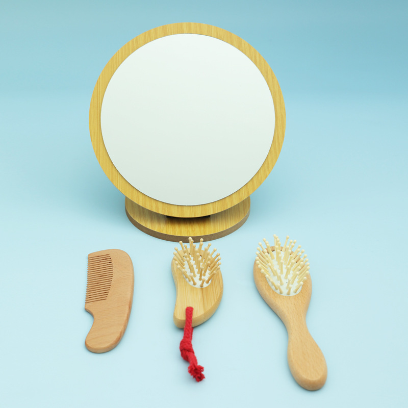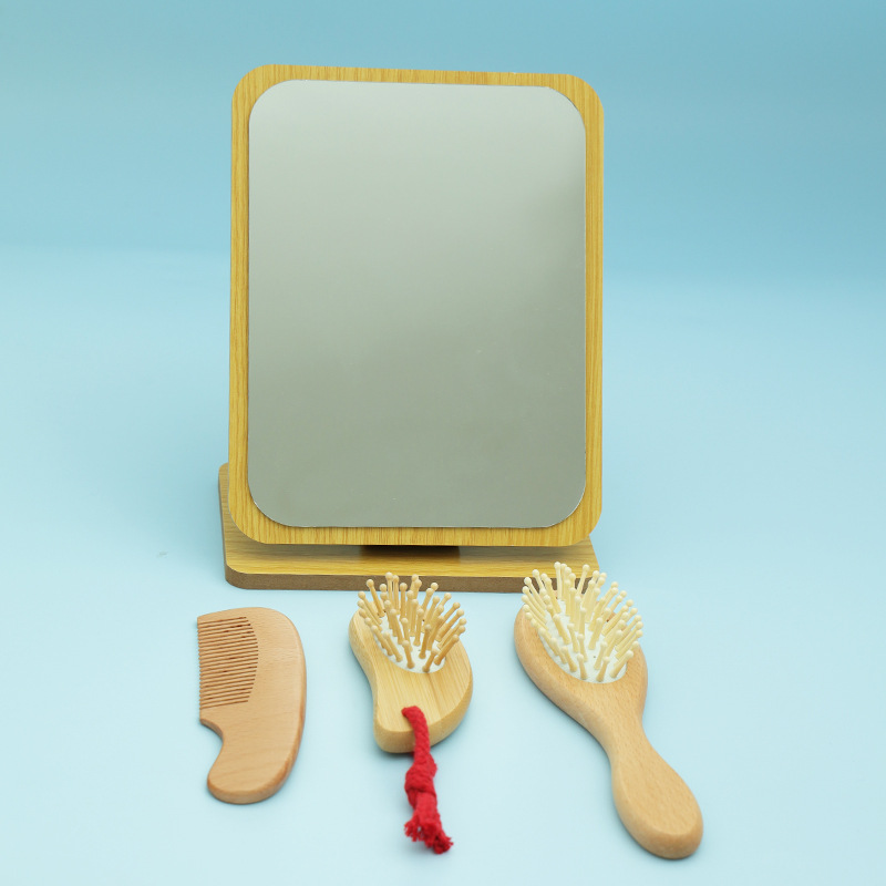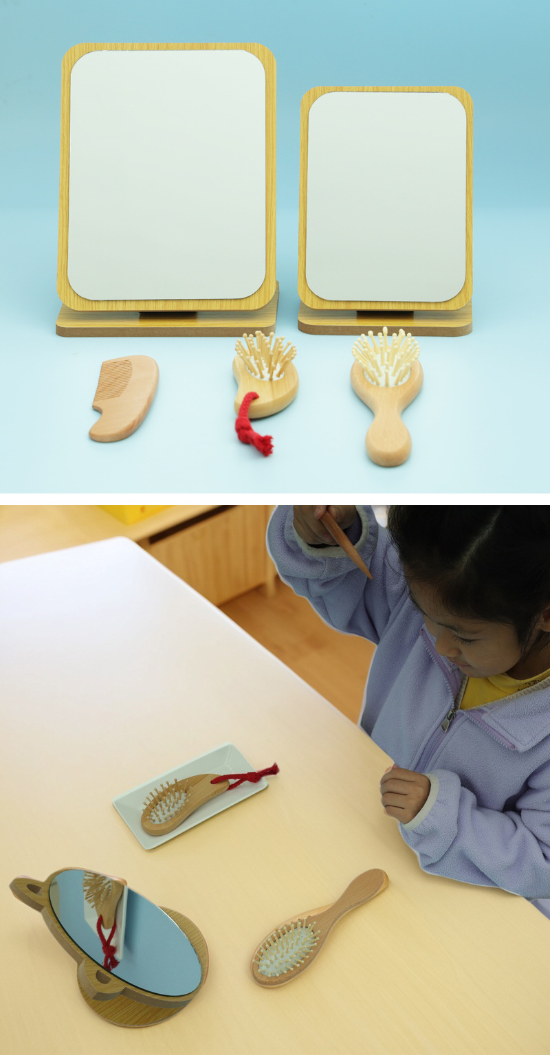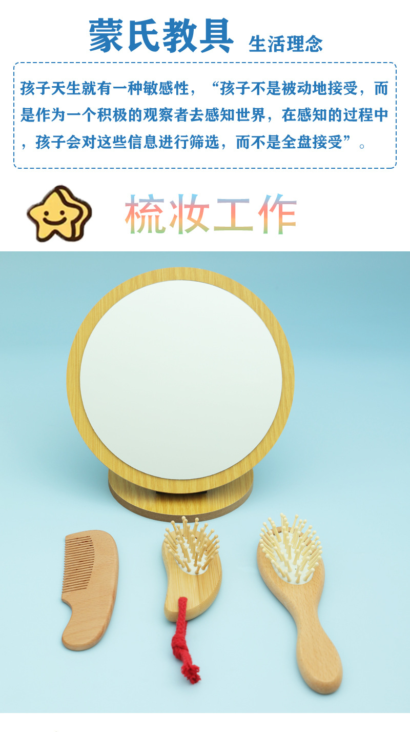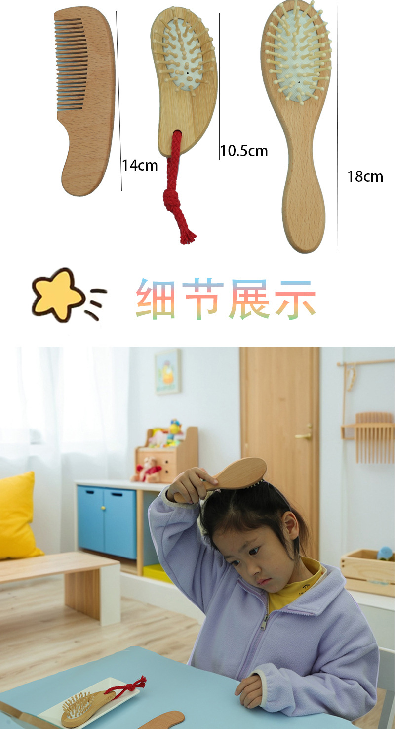 너도밤 나무 에어백 빗 몬테소리 몬테소리 교육 보조 드레싱 작업 일상 생활 공간 나무 거울 작은 빗 고양이 거울