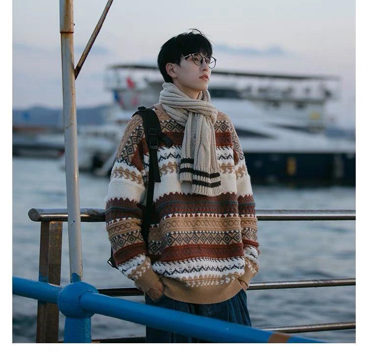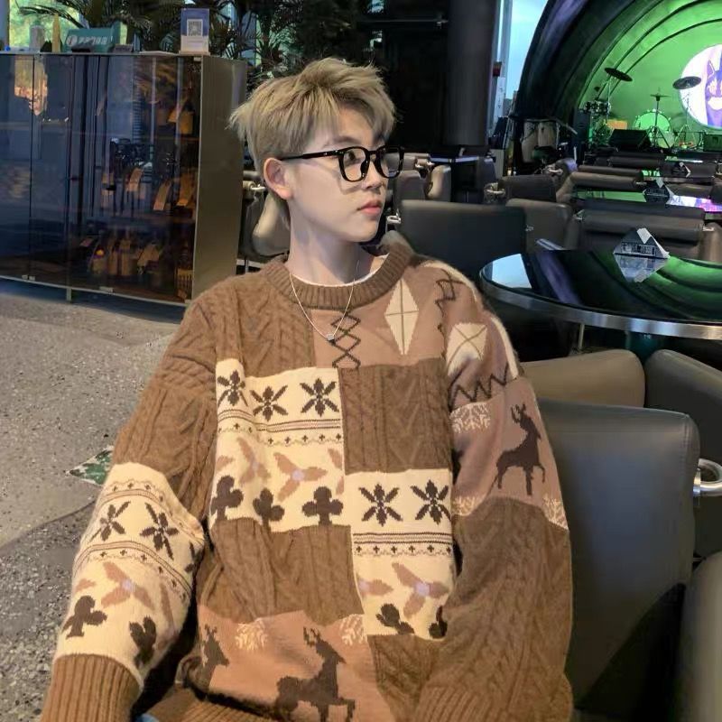페어아일랜드 크리스마스 스웨터 남자 일본 레트로 게으른 두꺼운 골동품 패션 브랜드 겨울 스웨터 도매스토어 가기