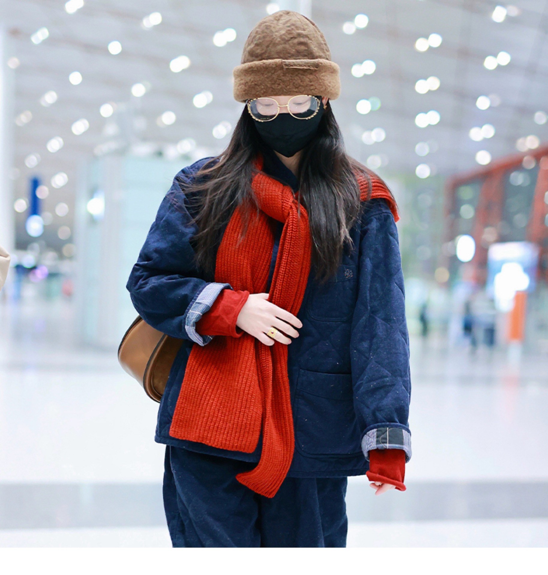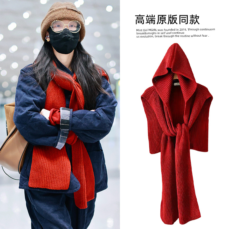 倪妮同款帽子围巾一体高级感保暖防寒针织连帽披肩围脖2024新款女
