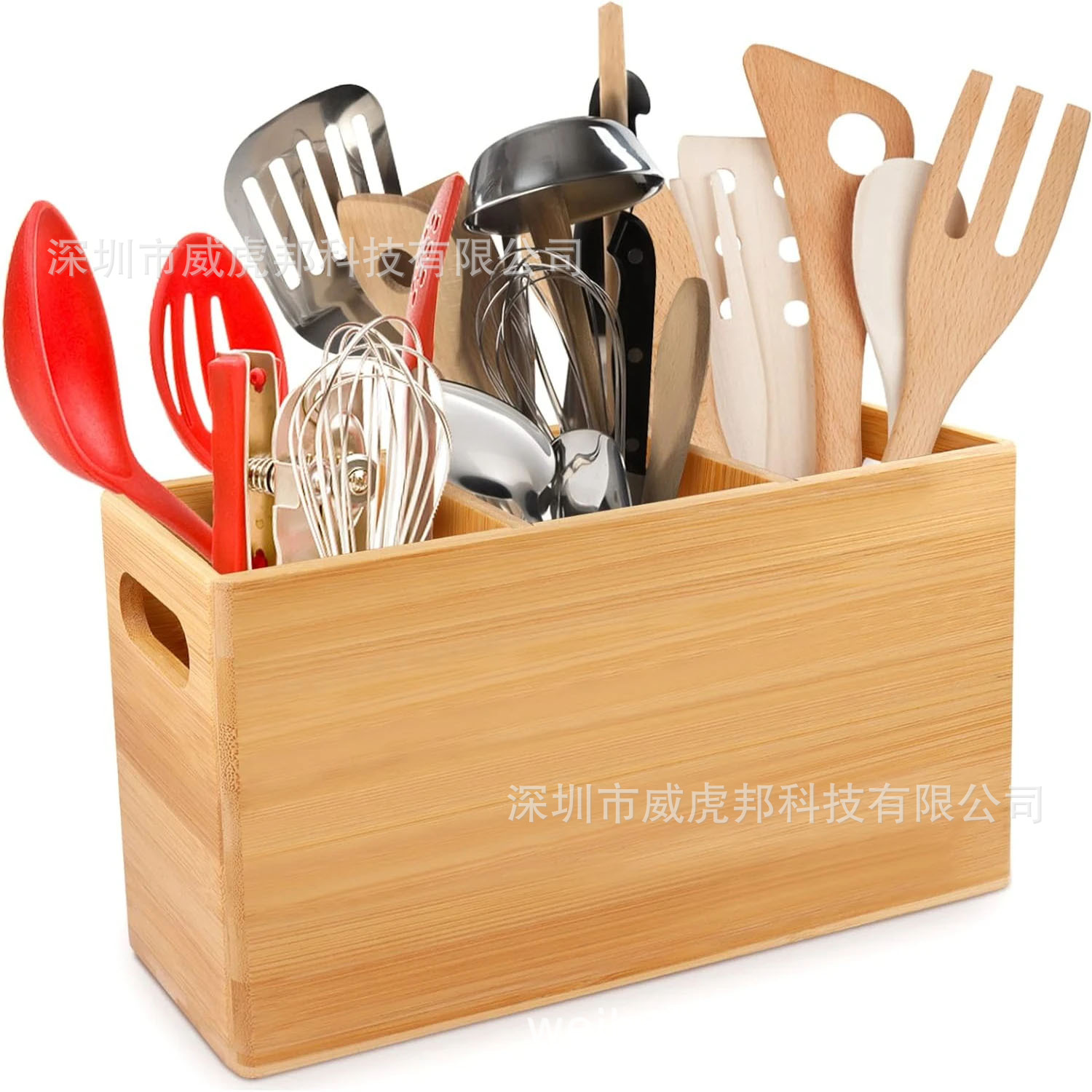 대나무 식기 보관 랙, 주방 카운터에 적합한 3 개의 구획스토어 가기