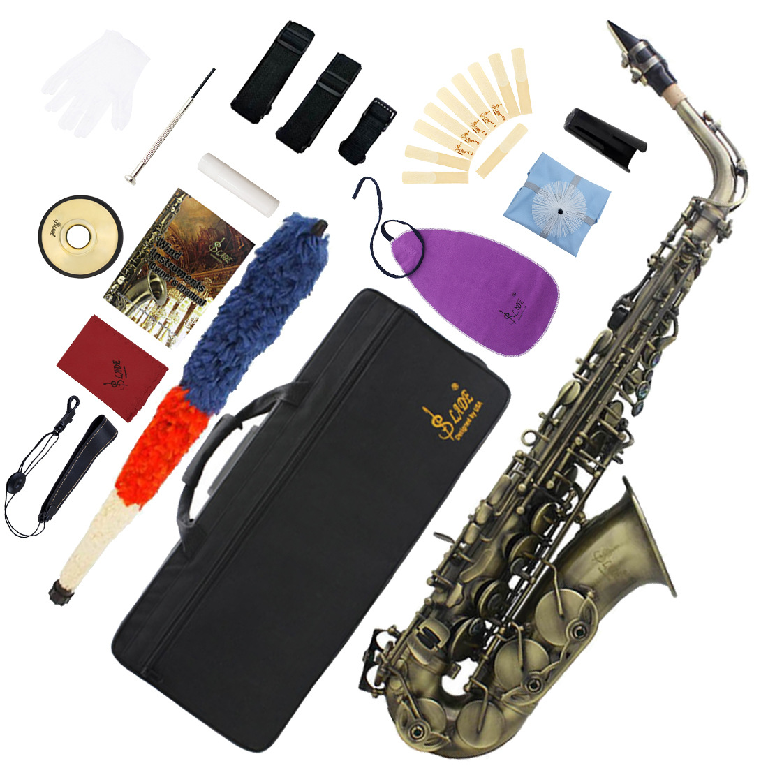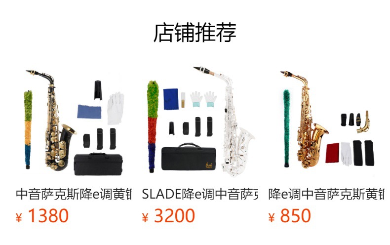 包装清单:萨克斯*1布盒*1刷子*1背带*1说明书*1哨片*10清洁布*3弱音器*1螺丝刀**1软木膏*1手套*2