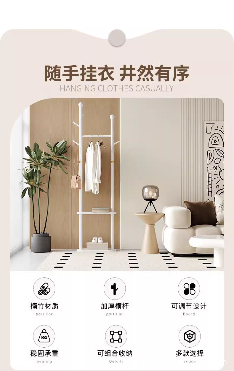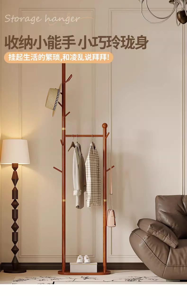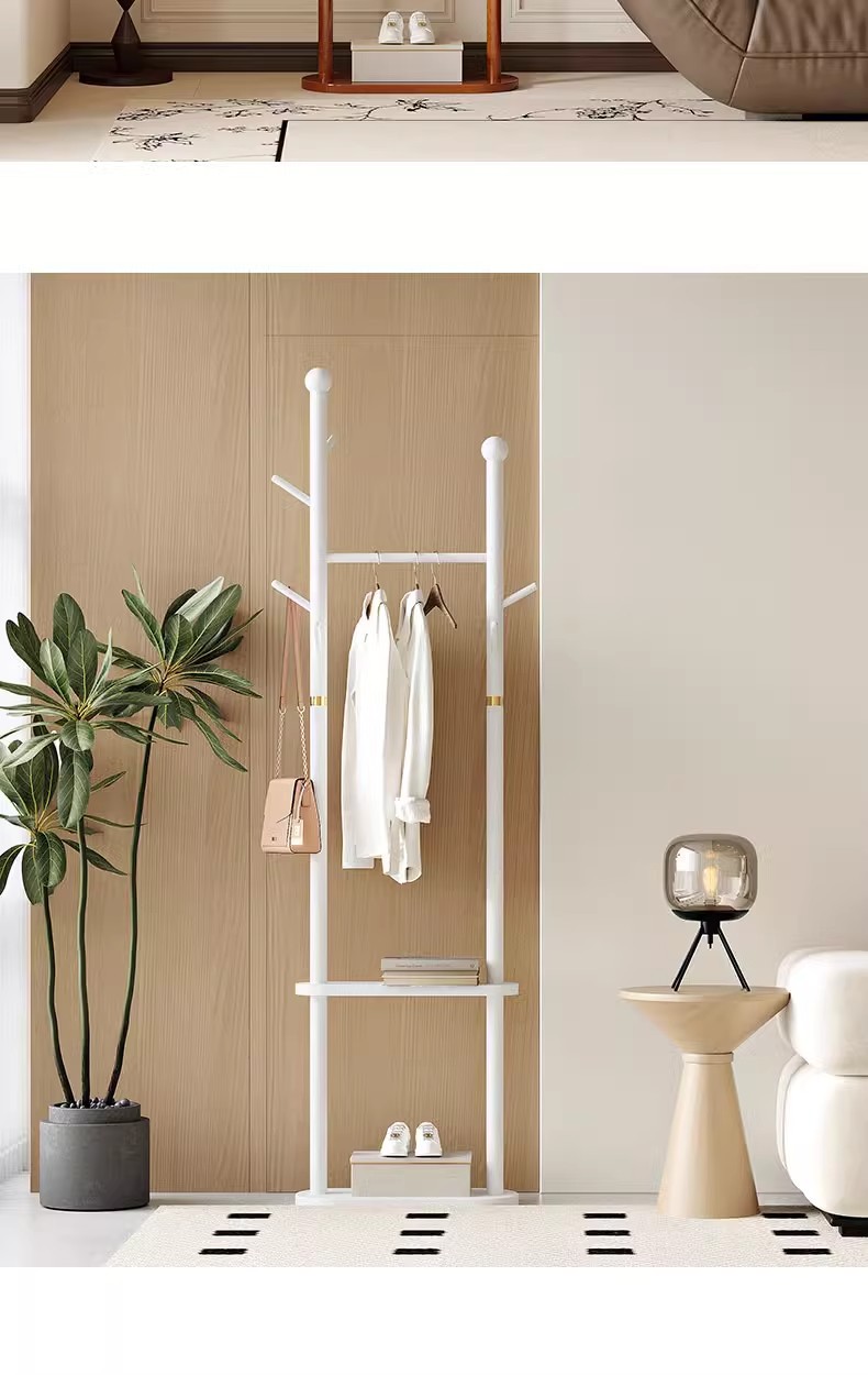 단단한 나무 옷걸이 바닥 코트 랙 침실 가구 걸이 간단한 수직 자작 나무 옷 걸이 랙 실내 교수형 랙스토어 가기