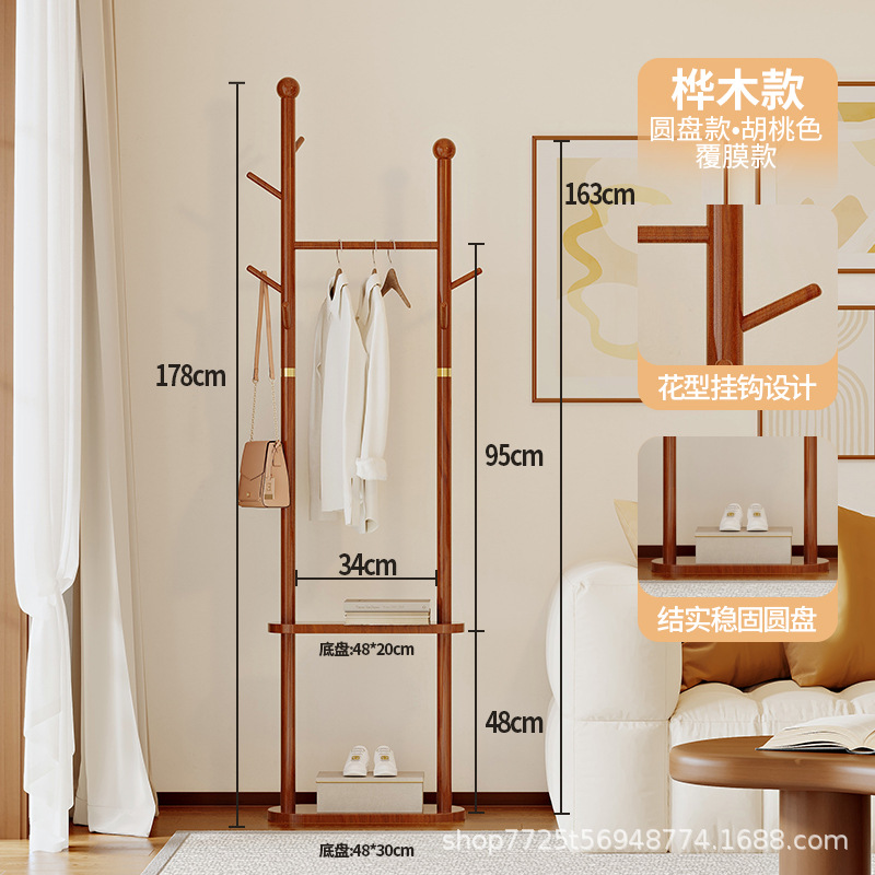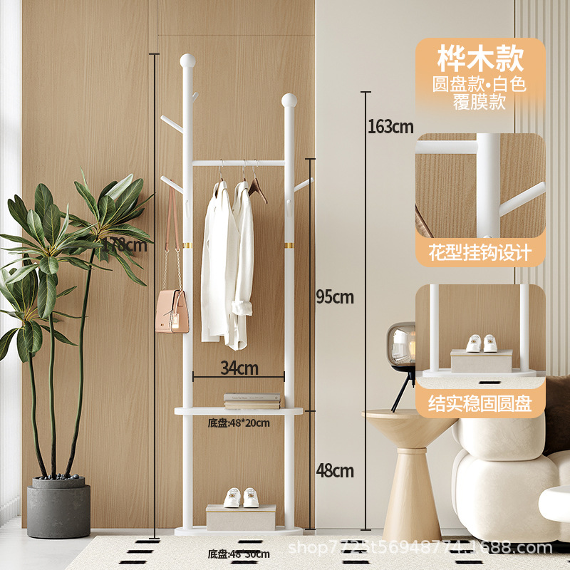 단단한 나무 옷걸이 바닥 코트 랙 침실 가구 걸이 간단한 수직 자작 나무 옷 걸이 랙 실내 교수형 랙