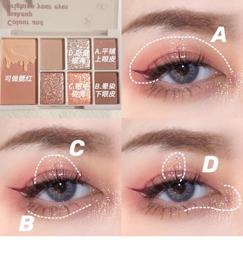 Xixi Eyeshadow Shiny Eyeshadow Fine Flash 7 색 Eyeshadow Plate 낮은 포화 다중 사용 지구 컬러 아이 섀도우 플레이트스토어 가기