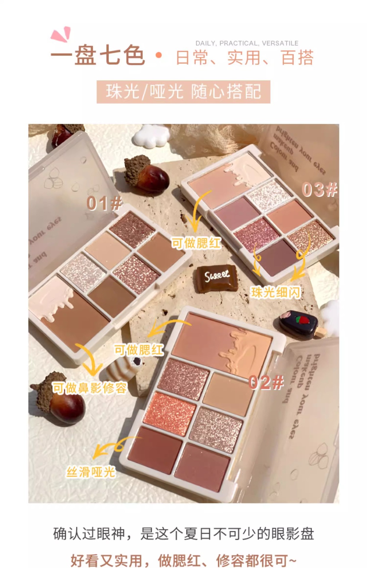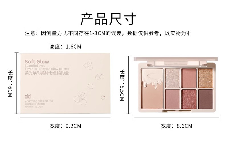 Xixi Eyeshadow Shiny Eyeshadow Fine Flash 7 색 Eyeshadow Plate 낮은 포화 다중 사용 지구 컬러 아이 섀도우 플레이트