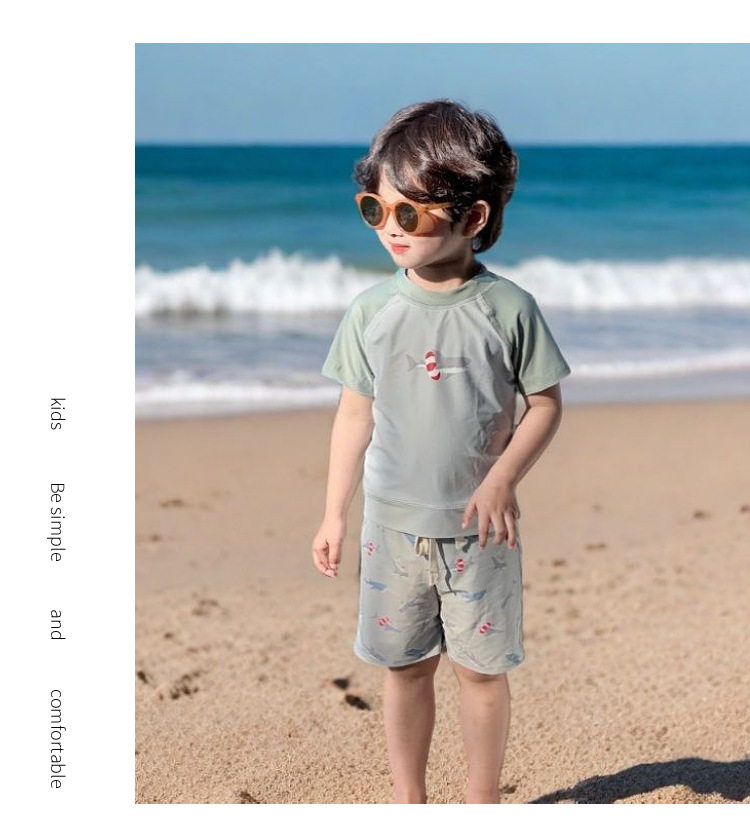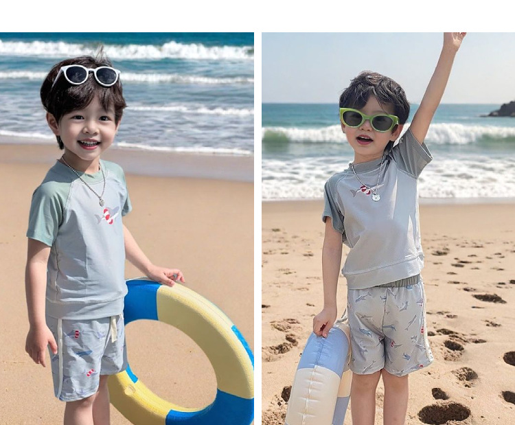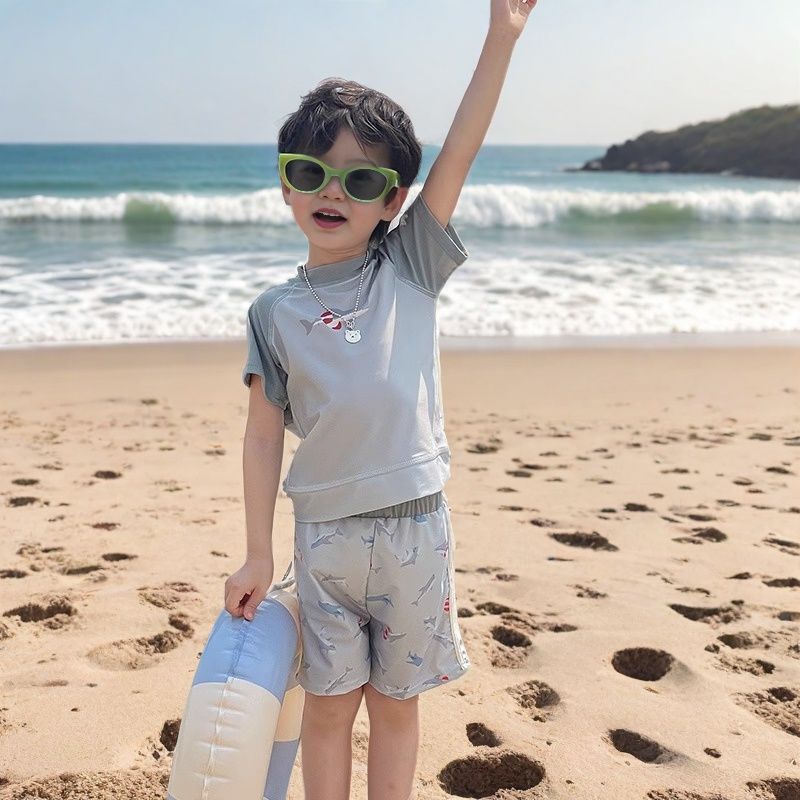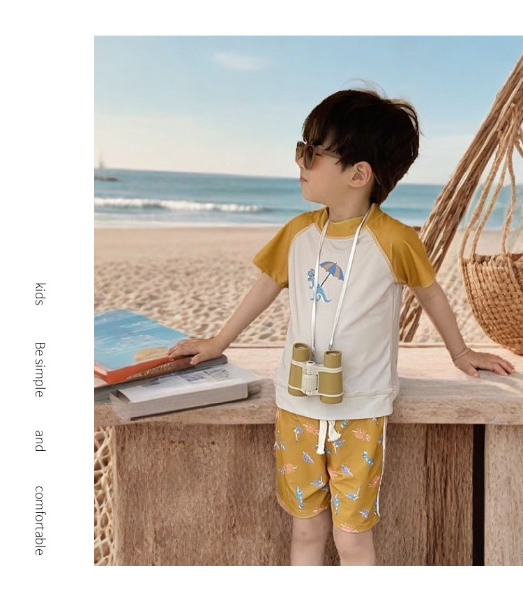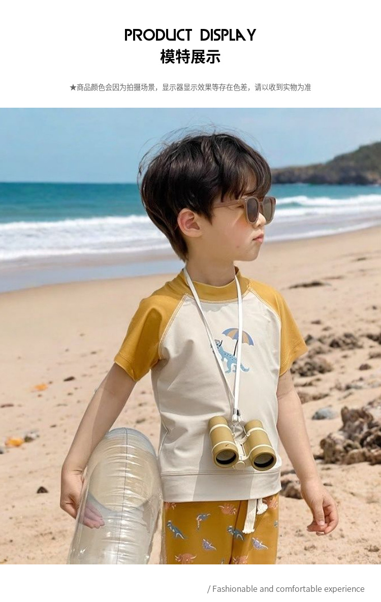 2025 신상 수영복 어린이 스플릿 귀여운 공룡 수영 세트 어린이 반팔 빠른 건조 옷스토어 가기