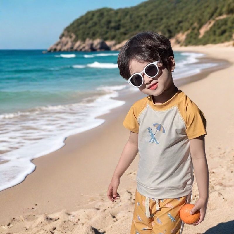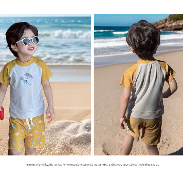 2025 신상 수영복 어린이 스플릿 귀여운 공룡 수영 세트 어린이 반팔 빠른 건조 옷