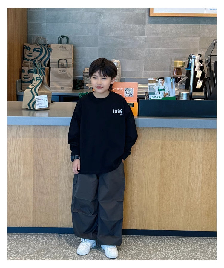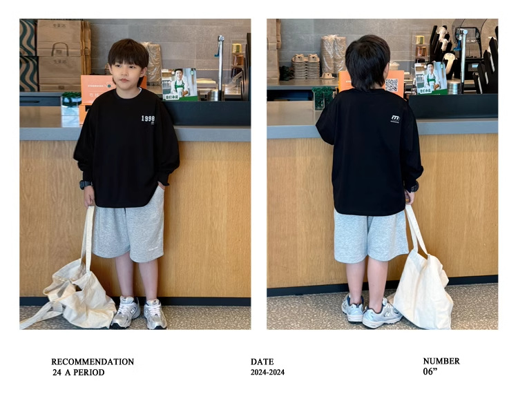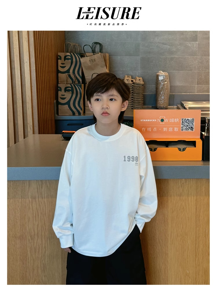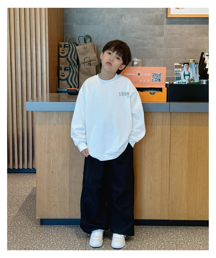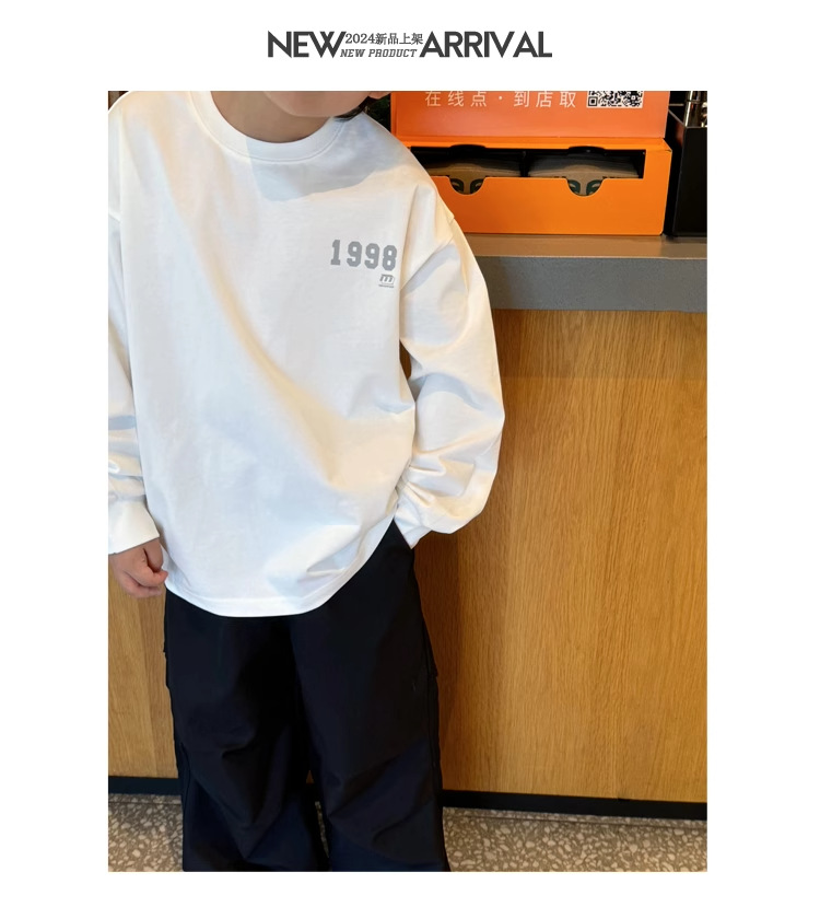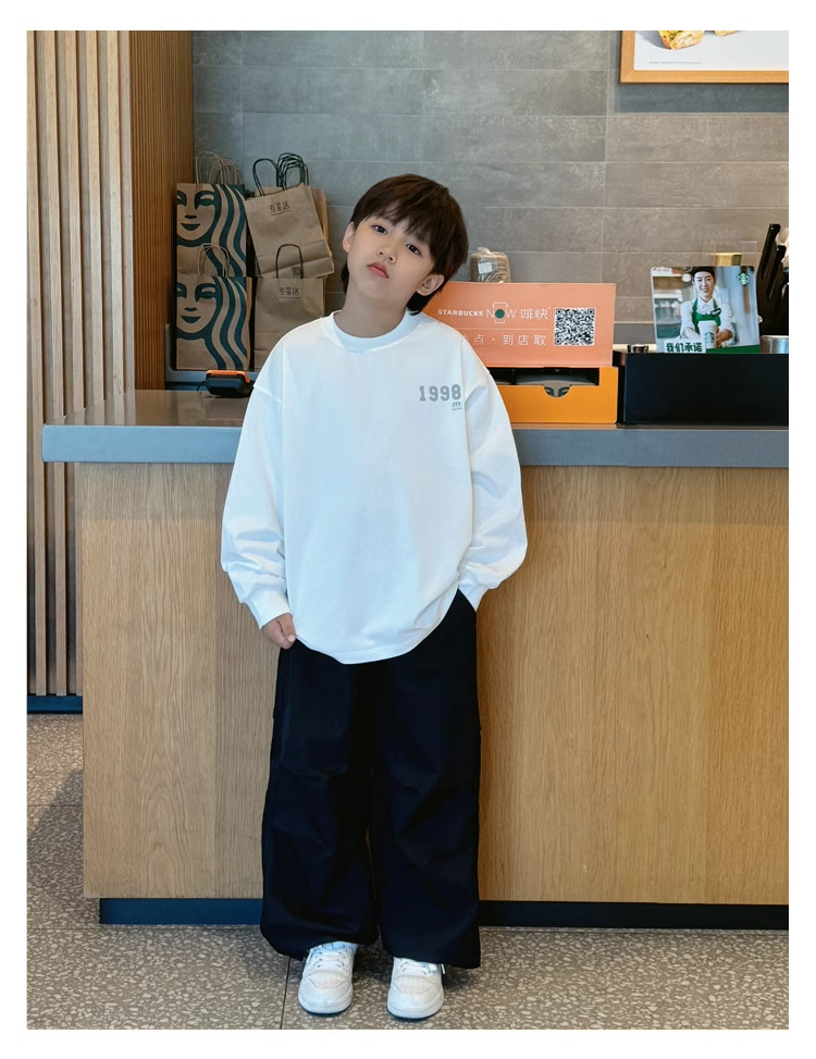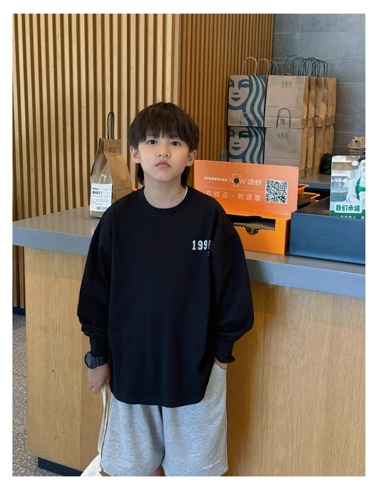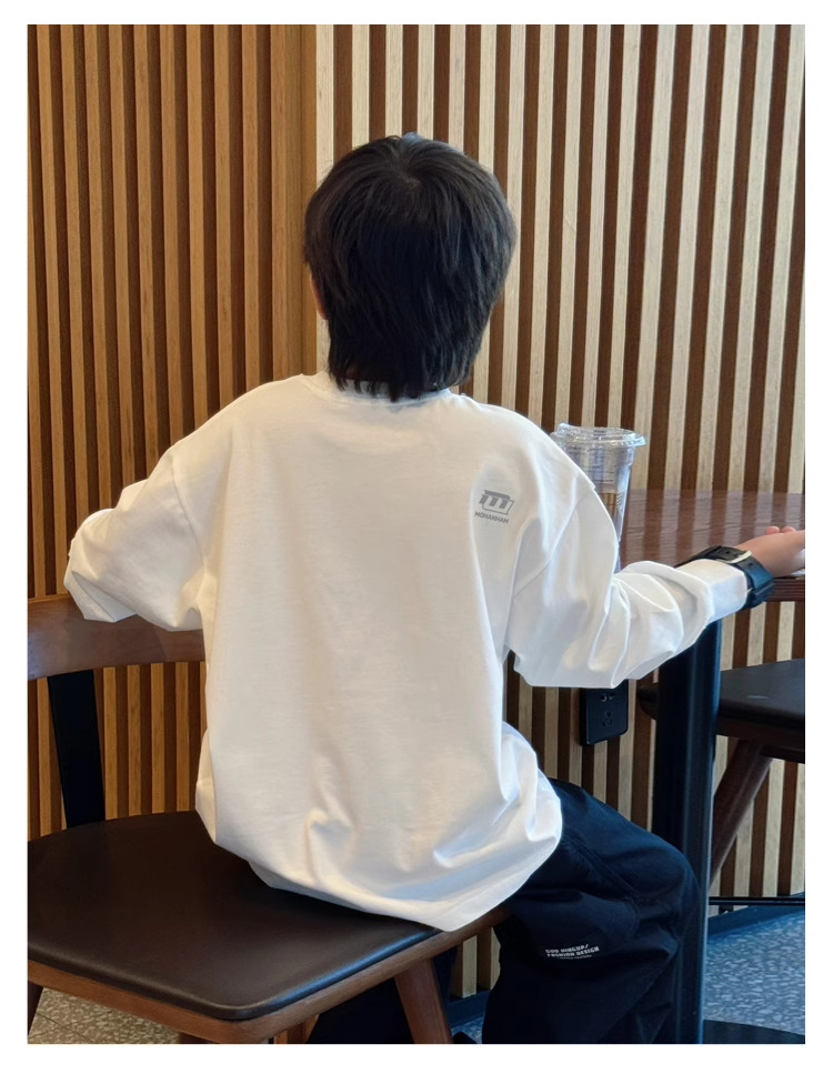 면 아동복 2024 가을 소년 한국식 편지 인쇄 어린이 느슨한 긴팔 티셔츠스토어 가기