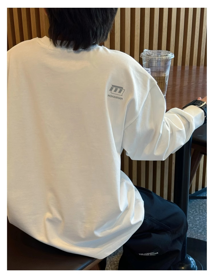 면 아동복 2024 가을 소년 한국식 편지 인쇄 어린이 느슨한 긴팔 티셔츠