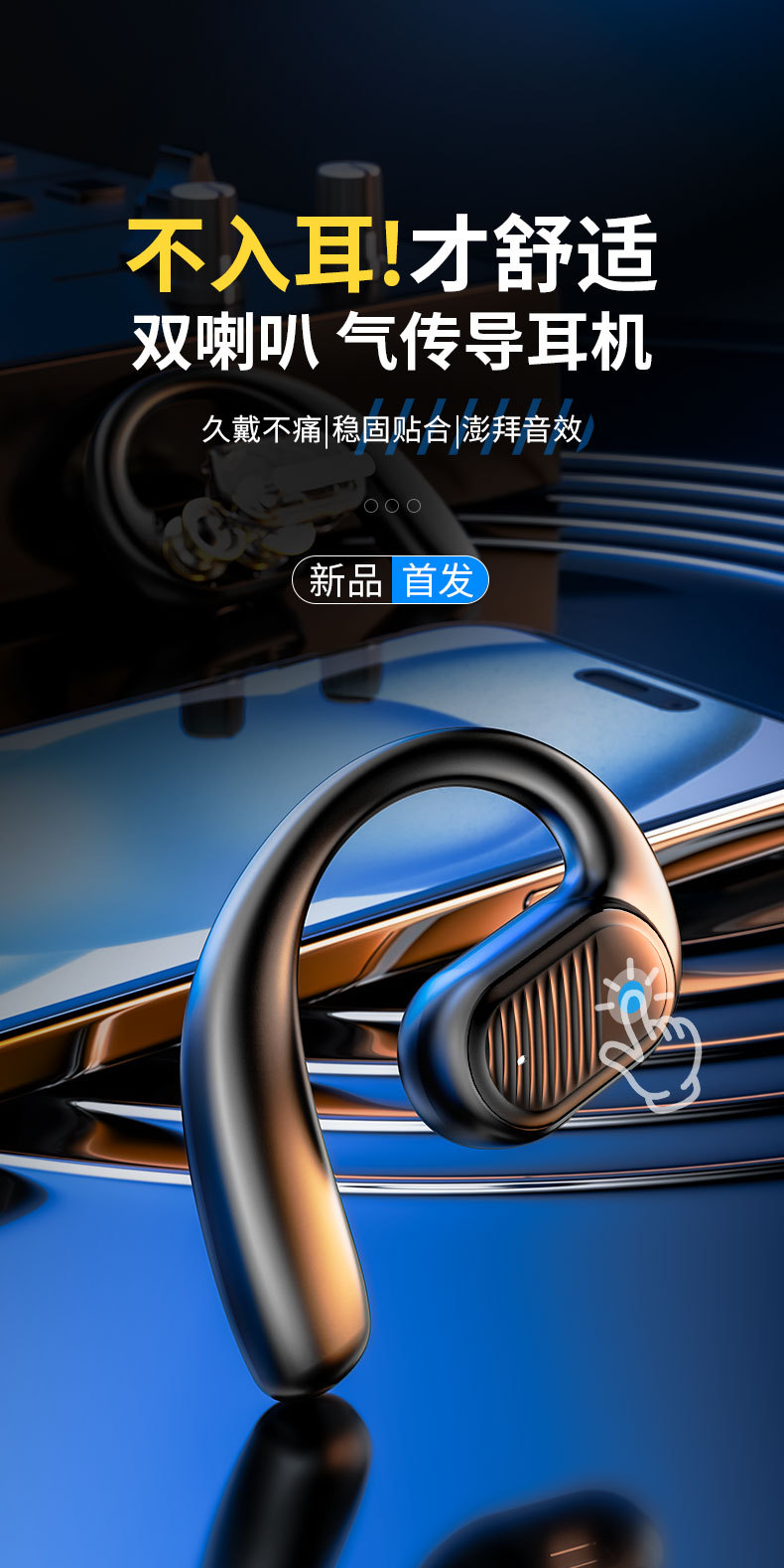 개인 모델 대외 무역 단일 귀 블루투스 헤드셋 귀 매달려 더블 혼 높은 음질 무선 스포츠 블루투스 헤드셋 긴 내구성