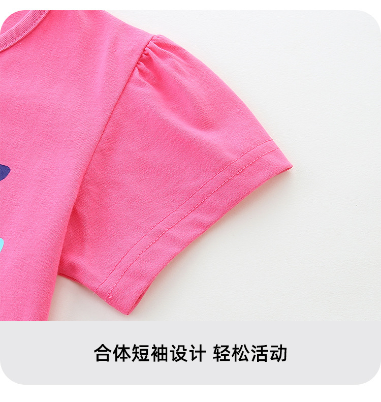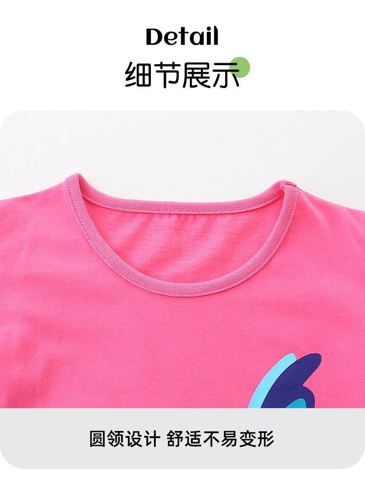AostaBetty 여름 반팔 여자 티셔츠 유럽과 미국 스타일 니트 코튼 어린이 티셔츠 패션 라운드 넥 어린이 탑스토어 가기
