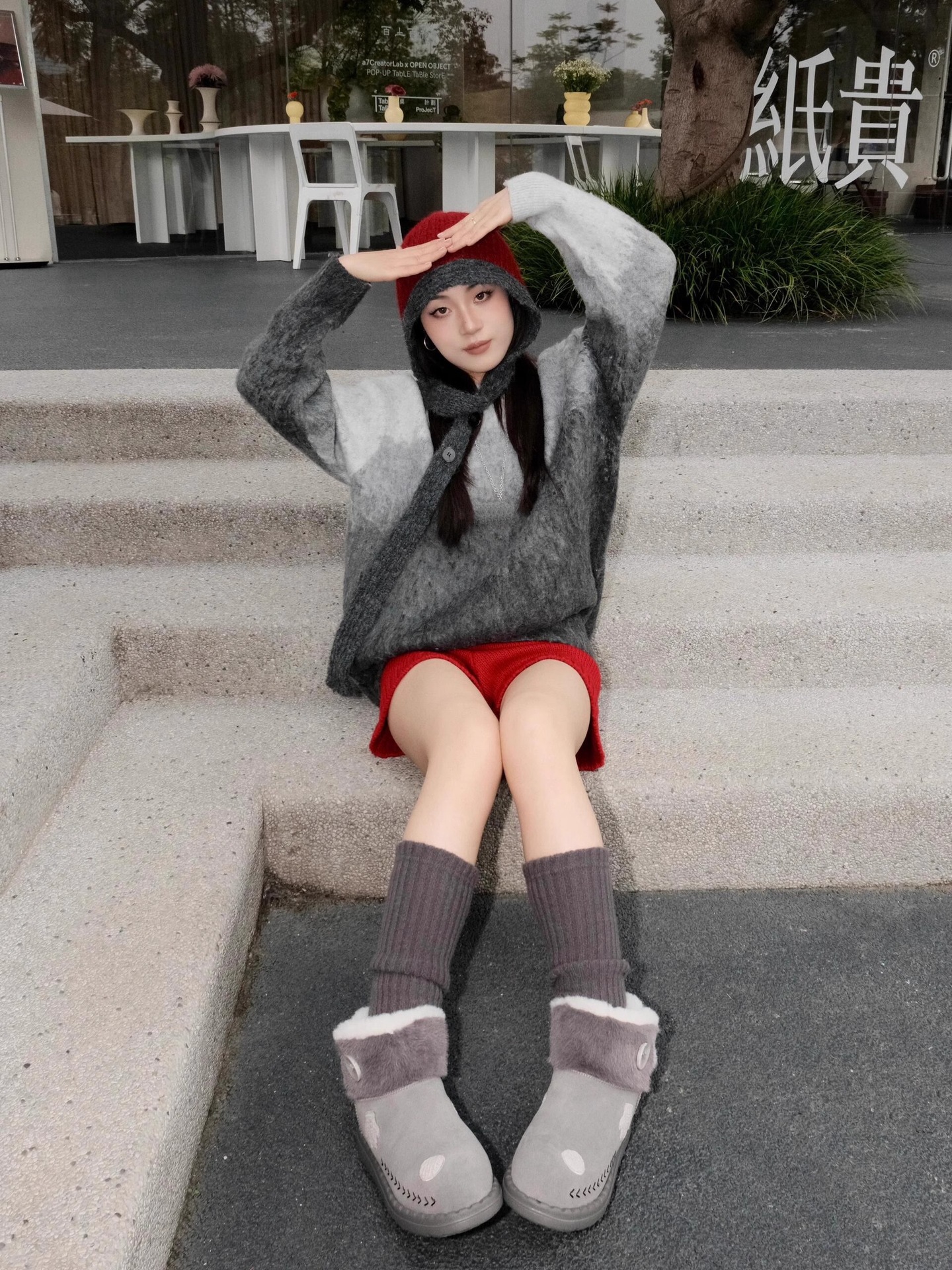 카운터 정품 미키 공동 회색 스노우 부츠 남성과 여성을위한 2024 겨울 새로운 모피 한 기모 면화 신발