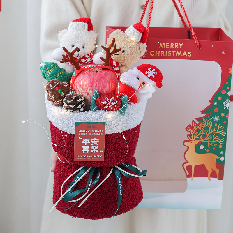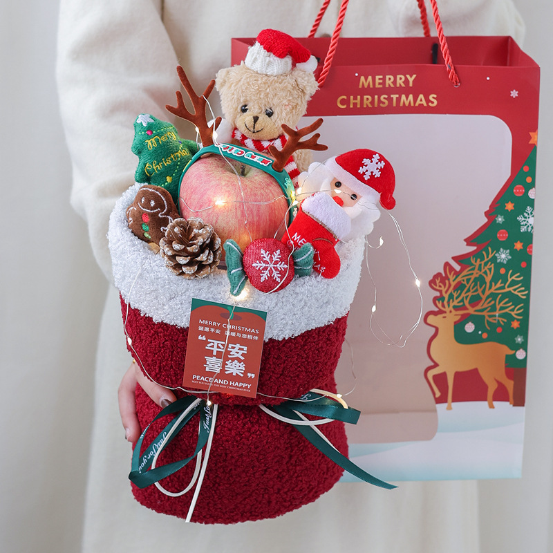 곰 인형 꽃다발 크리스마스 이브 애플 시뮬레이션 양모 꽃 크리스마스 선물 남성과 여성 친구 크리스마스 꽃다발스토어 가기