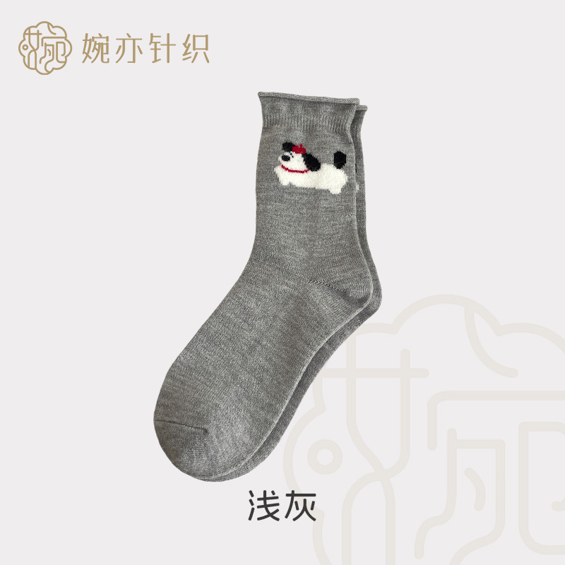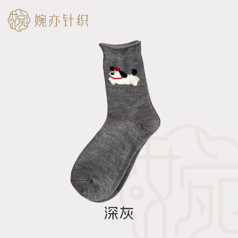 달리는 개 양모 양말 어린이 가을과 겨울 두꺼운 따뜻한 양말 만화 귀여운 회색 일본 스타킹 양말 양말