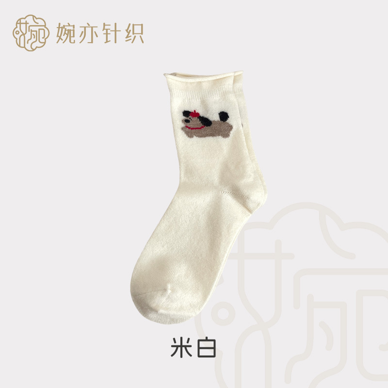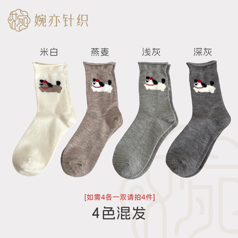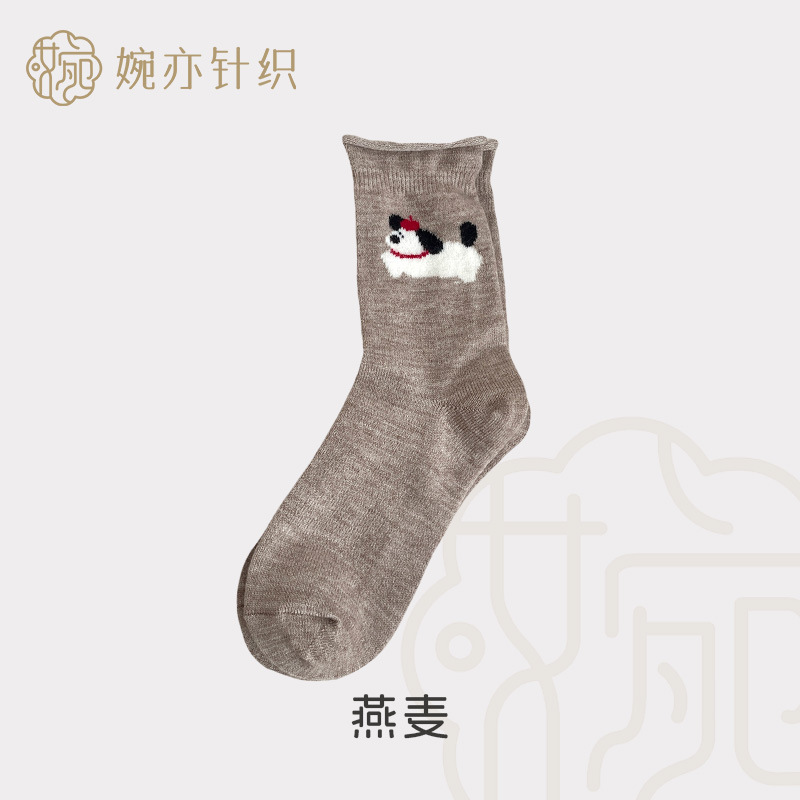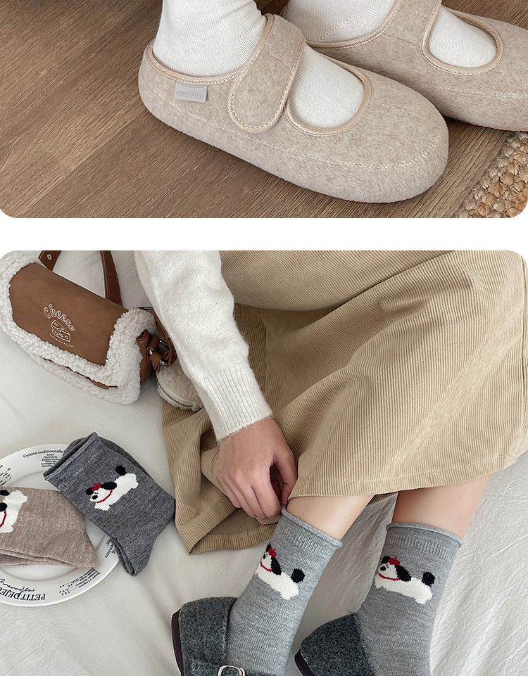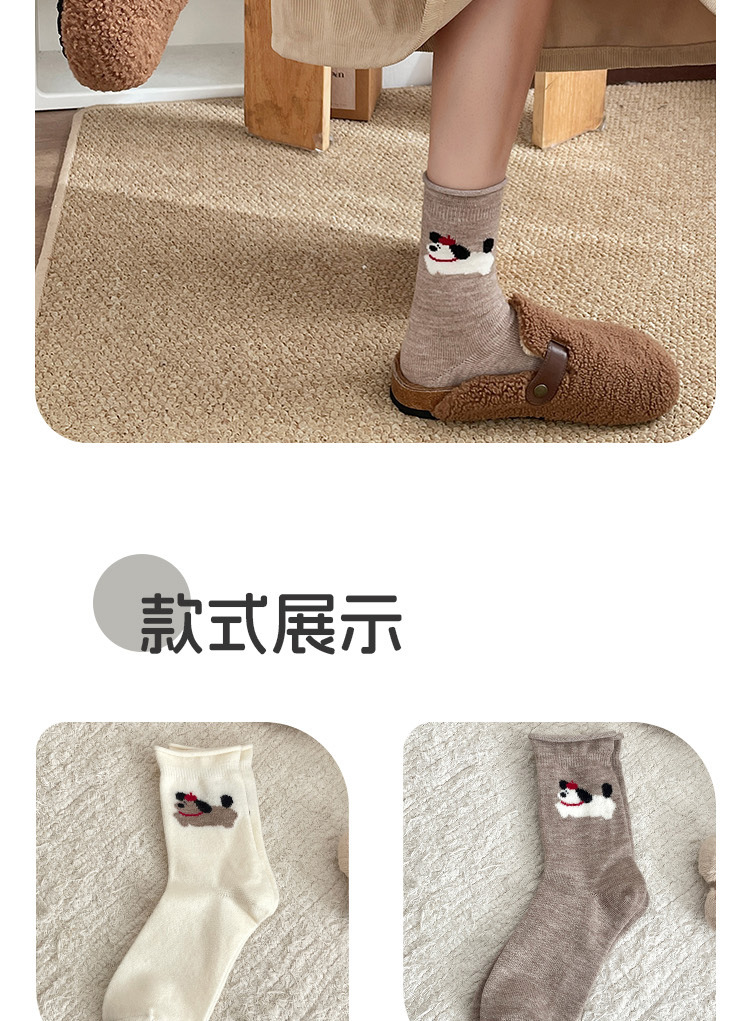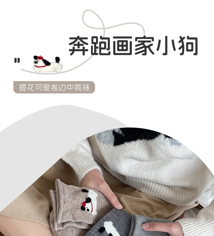 달리는 개 양모 양말 어린이 가을과 겨울 두꺼운 따뜻한 양말 만화 귀여운 회색 일본 스타킹 양말 양말스토어 가기