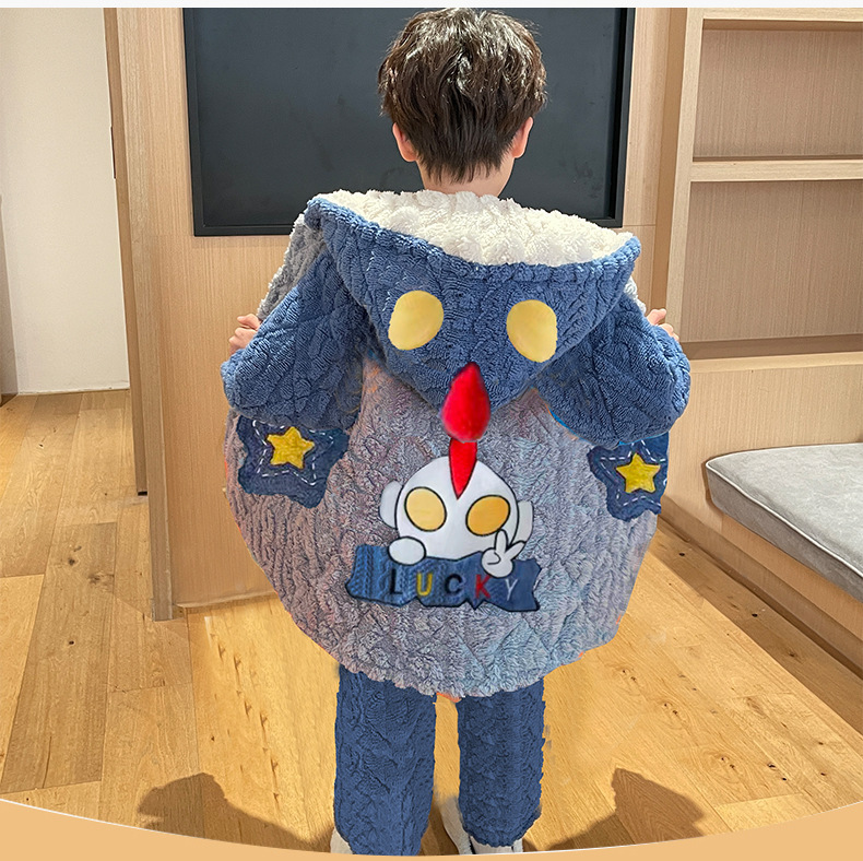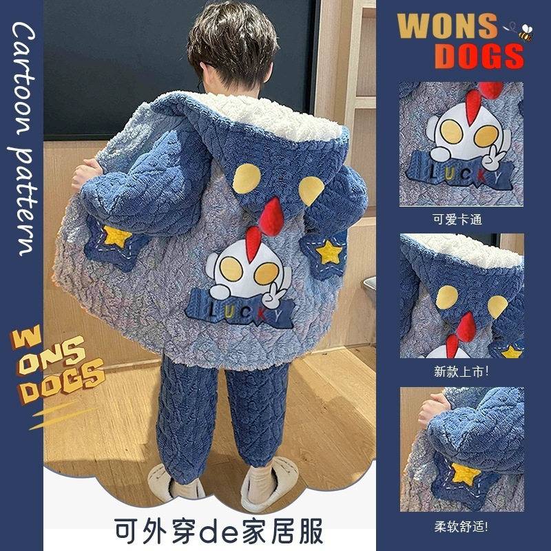 어린이용 신상 잠옷, 남아용 중간 길이 울트라맨 가을 겨울용 3중 누빔 두꺼운 벨벳 코랄 벨벳 홈웨어스토어 가기