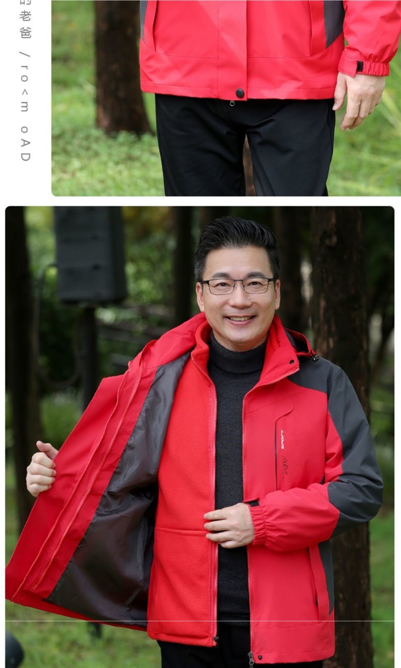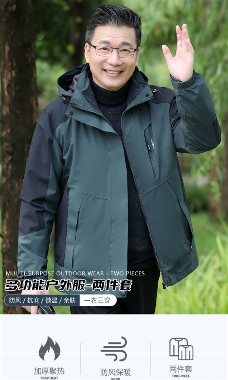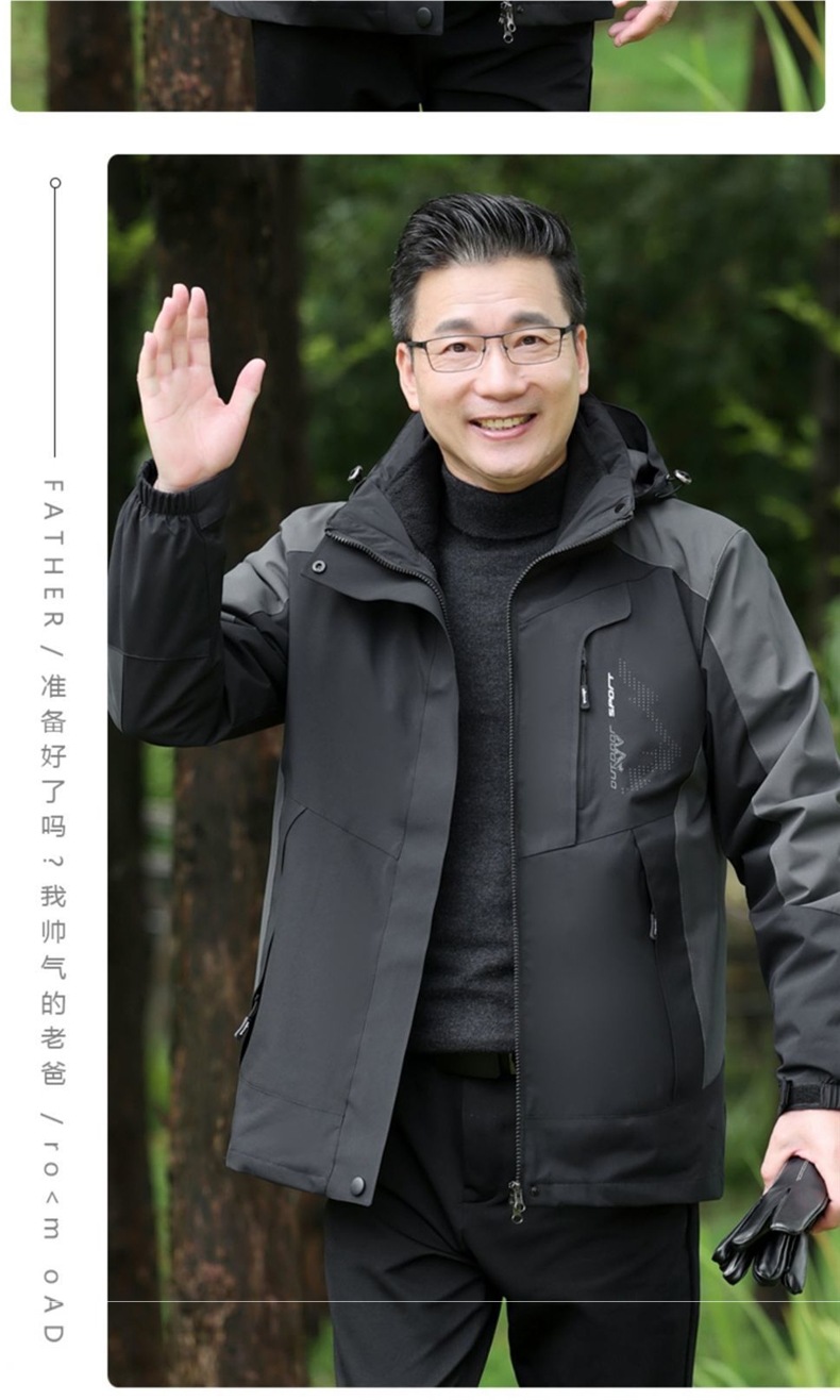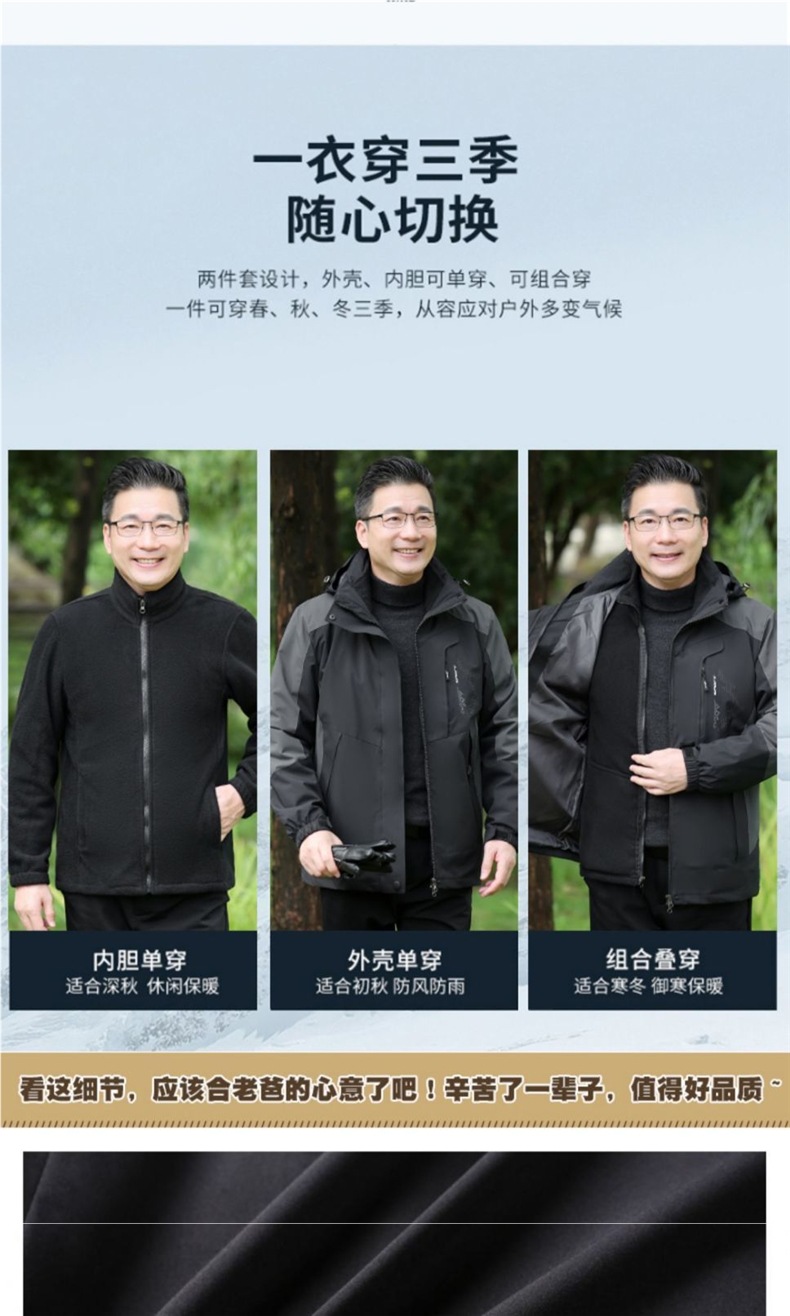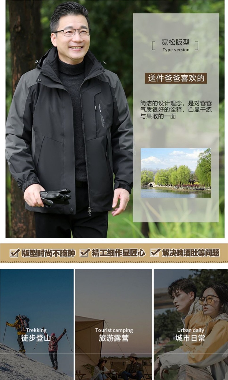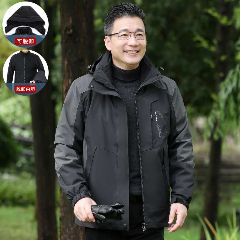 아빠의 코트 봄과 가을 분리 가능한 3 대 1 충전 중년 및 노인 남성을위한 남자 겨울 캐주얼 자켓