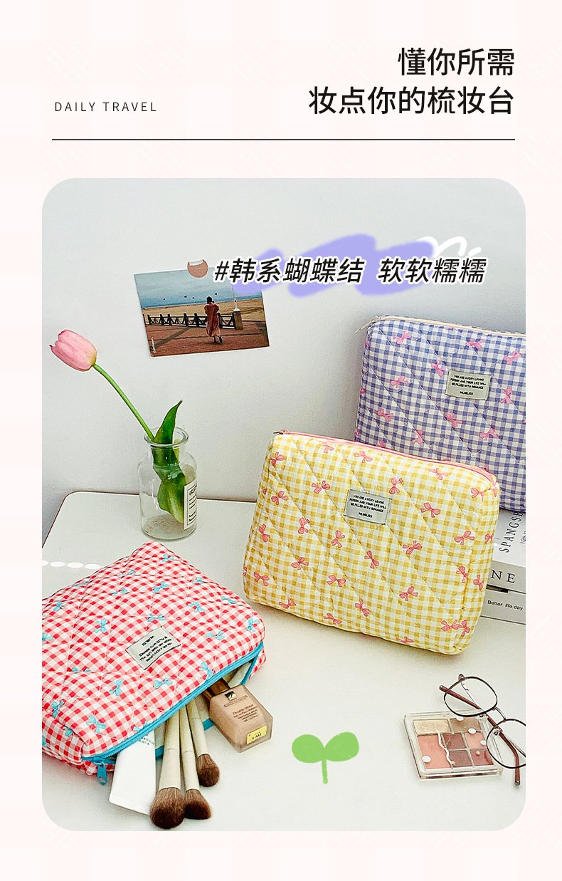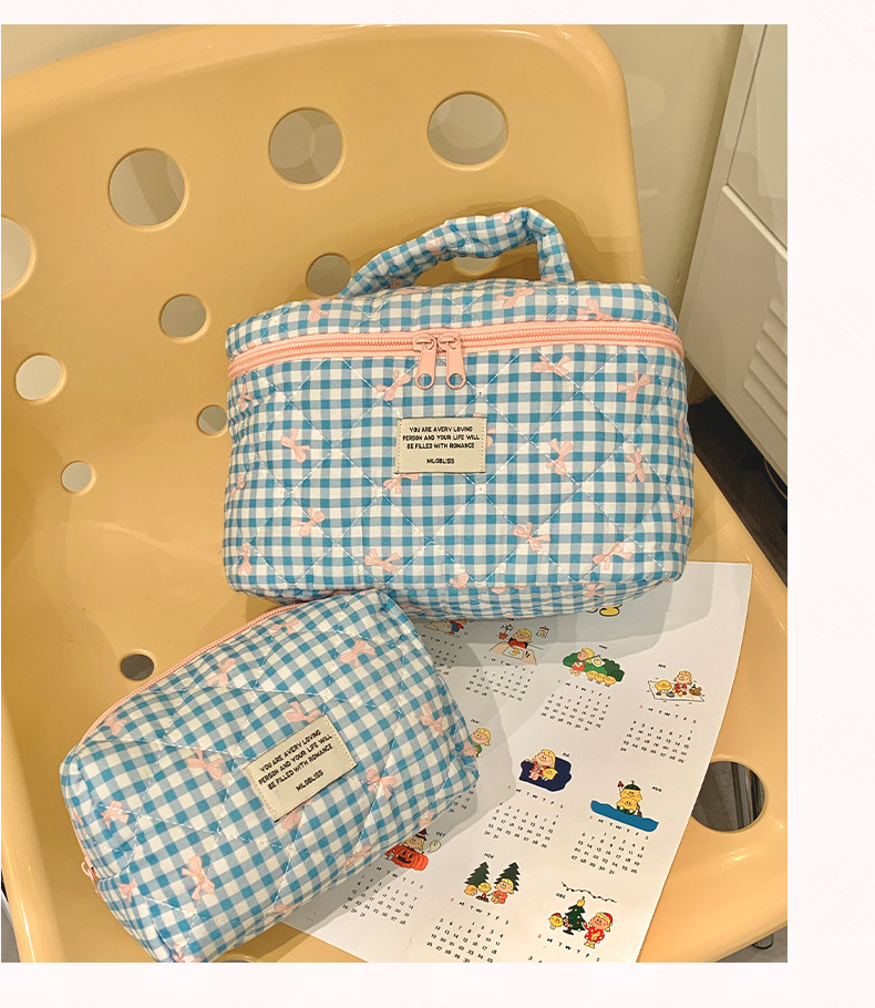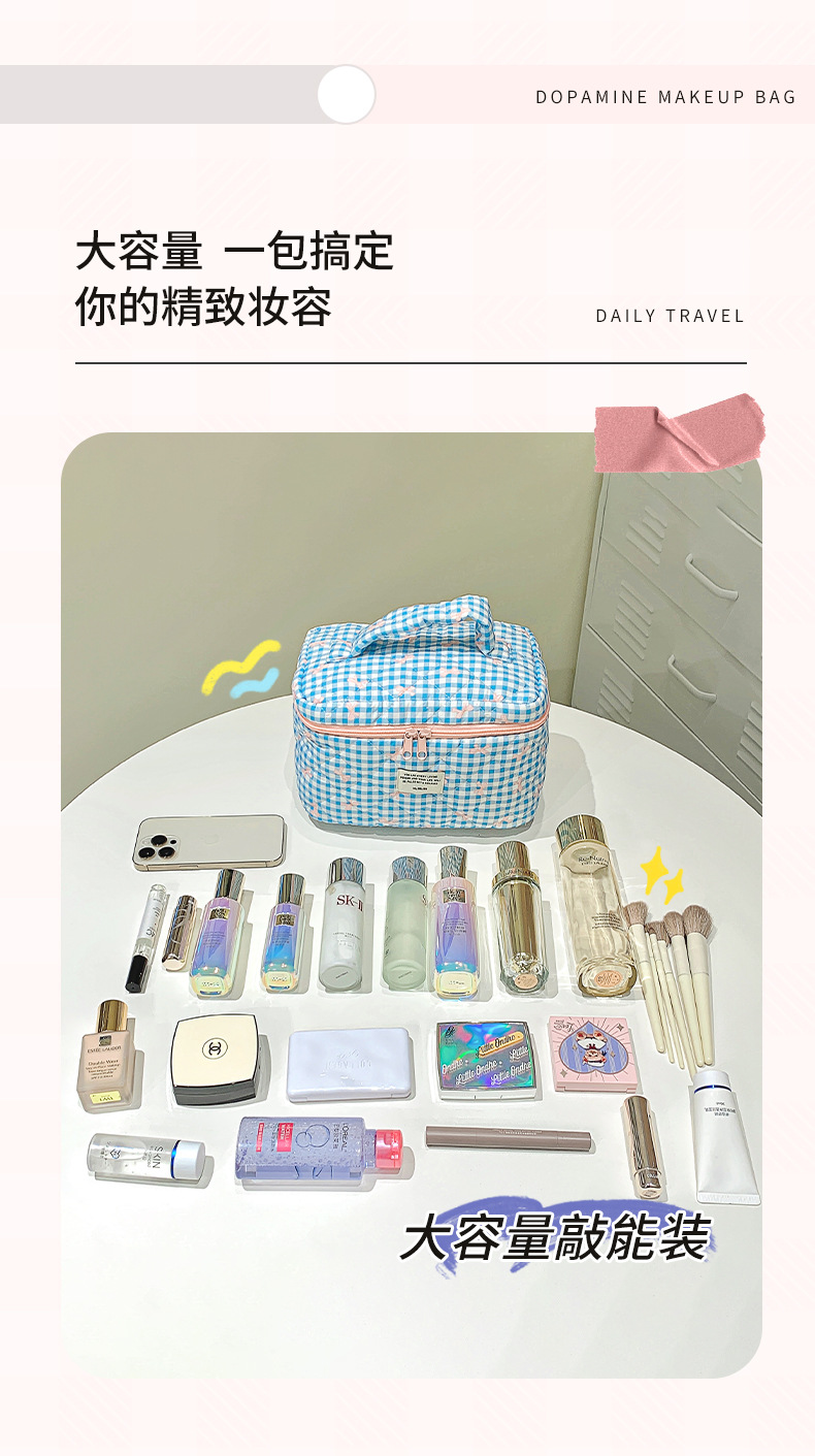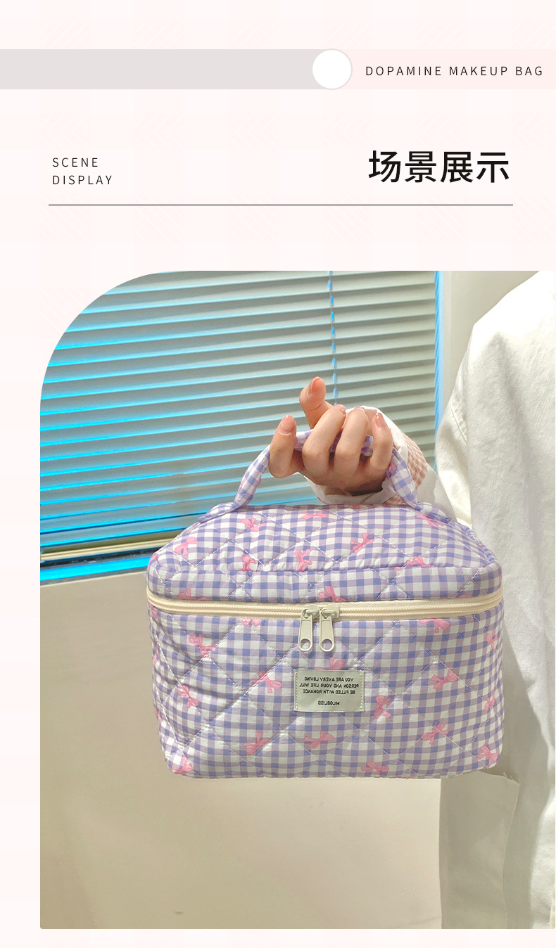 새로운 Ins 스타일 퀼트 체크 무늬 활 메이크업 가방 대용량 하이 엔드 여행 휴대용 워시 스토리지 백