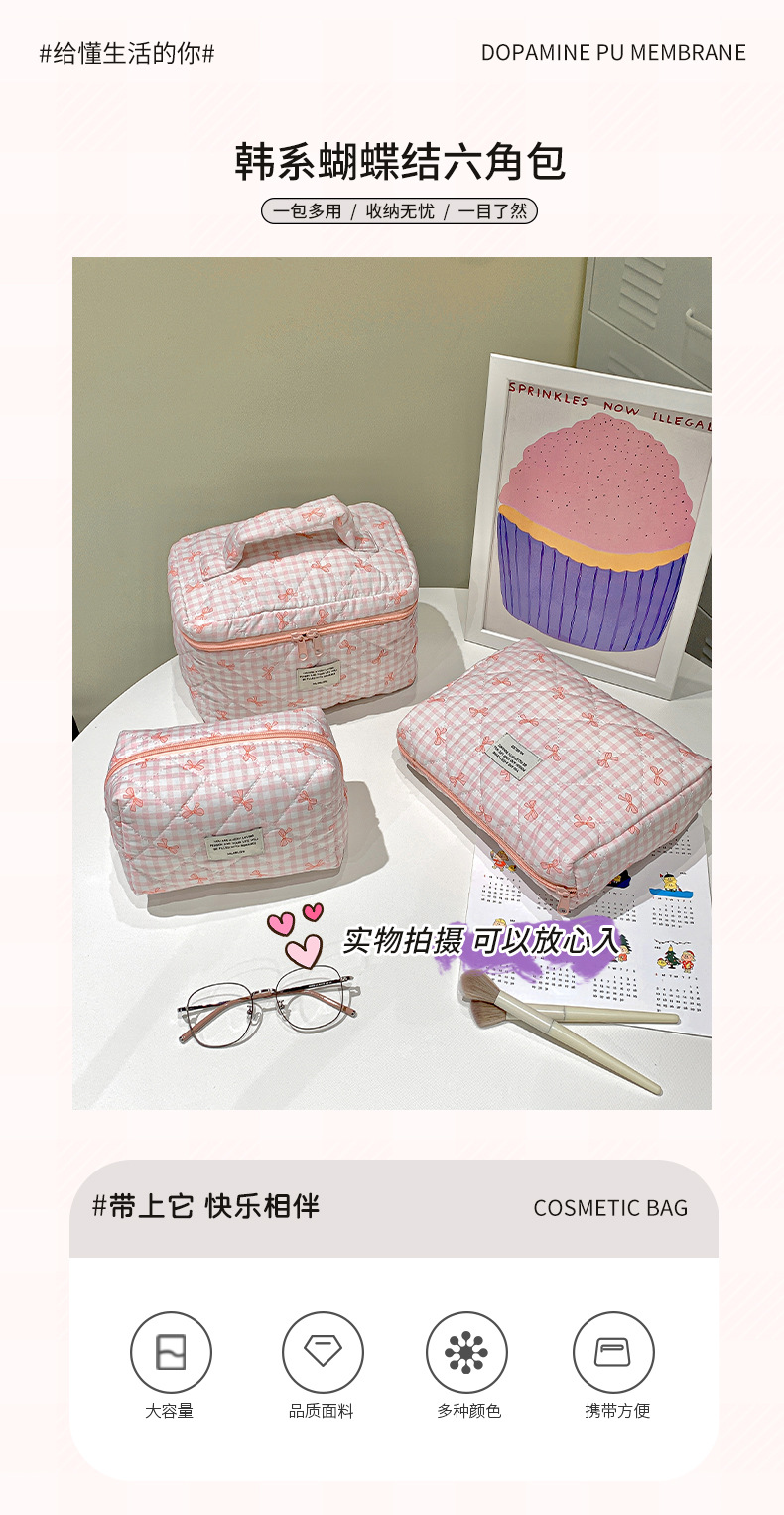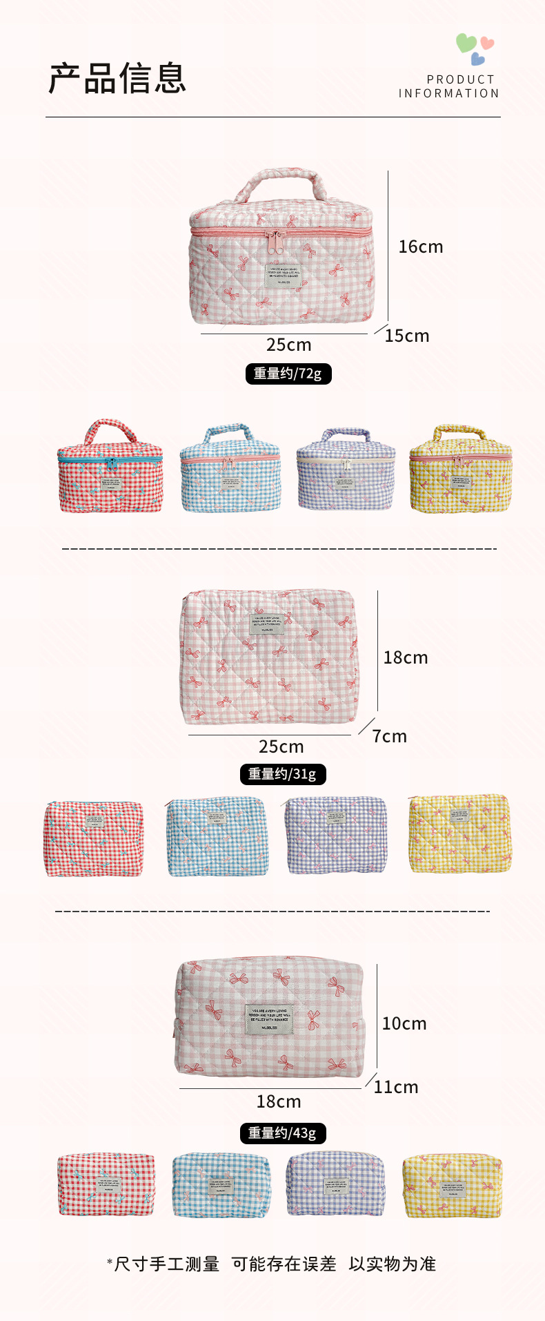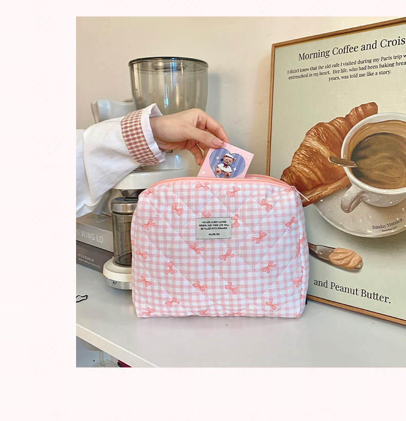 새로운 Ins 스타일 퀼트 체크 무늬 활 메이크업 가방 대용량 하이 엔드 여행 휴대용 워시 스토리지 백
