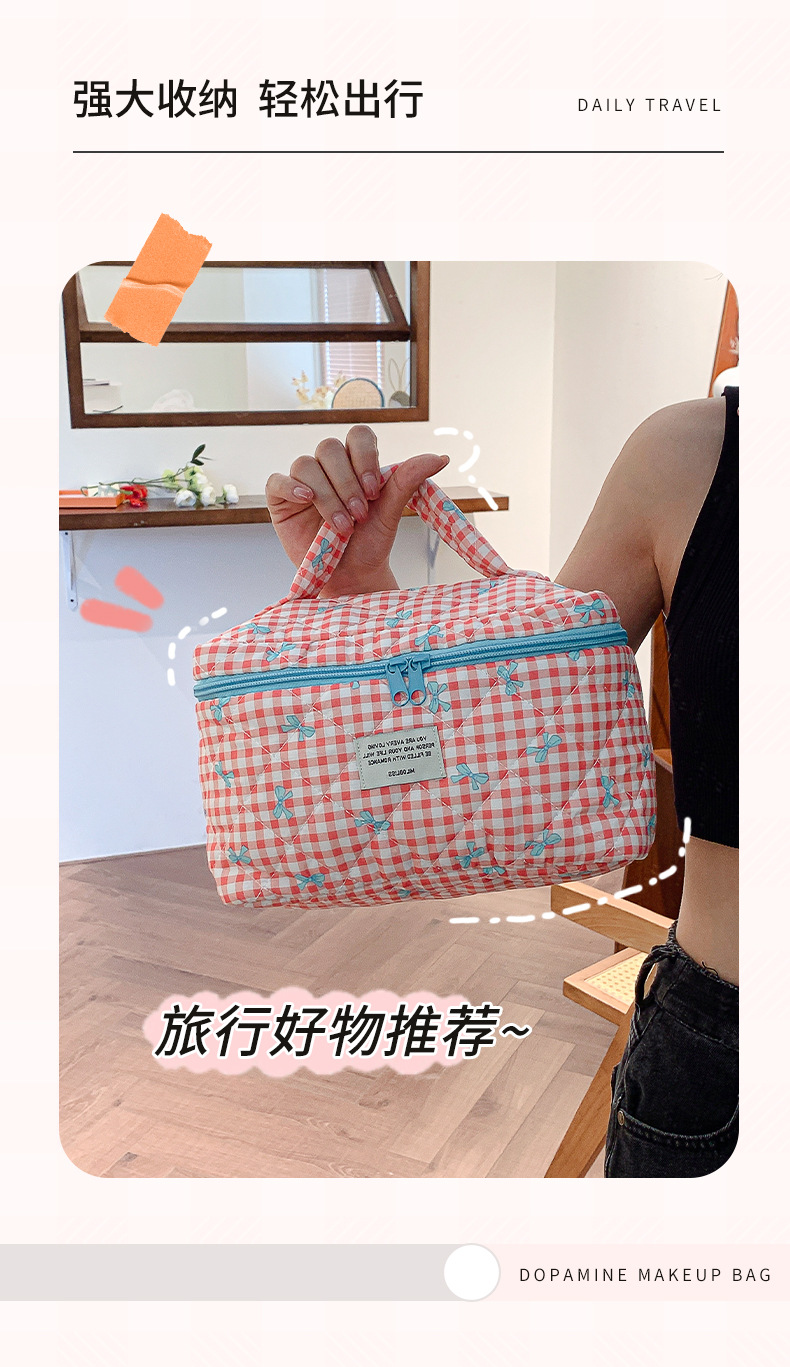 새로운 Ins 스타일 퀼트 체크 무늬 활 메이크업 가방 대용량 하이 엔드 여행 휴대용 워시 스토리지 백스토어 가기