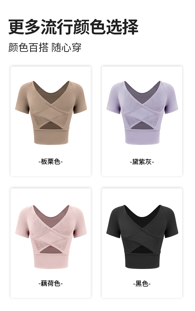 여성을위한 요가 옷 여름 새로운 스타일 하이 엔드 메쉬 크로스 아름다운 등받이 조끼 필라테스 반팔 피트니스 의류 탑