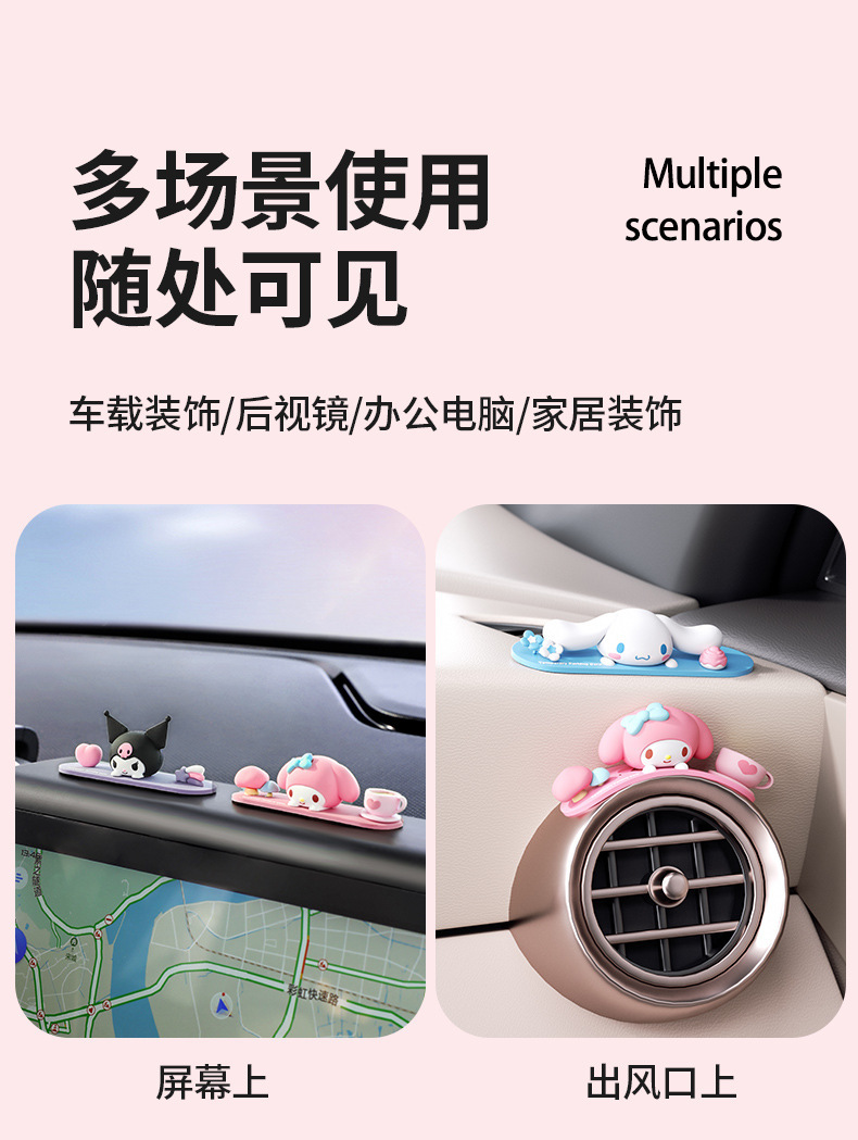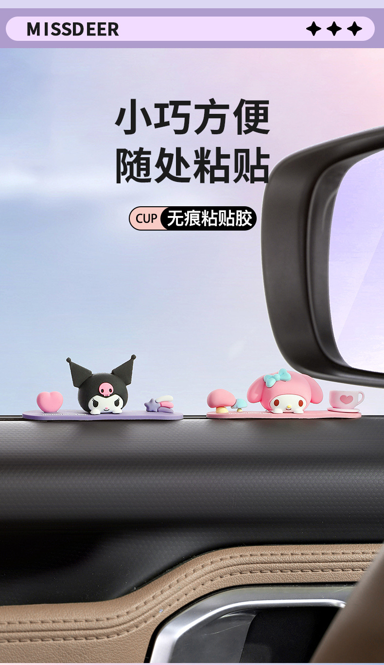 산리오 자동차 장식품, 자동차 센터 콘솔 장식품, 고탄성 무자국 접착 자동차 인테리어 장식품, 고급스러운 느낌