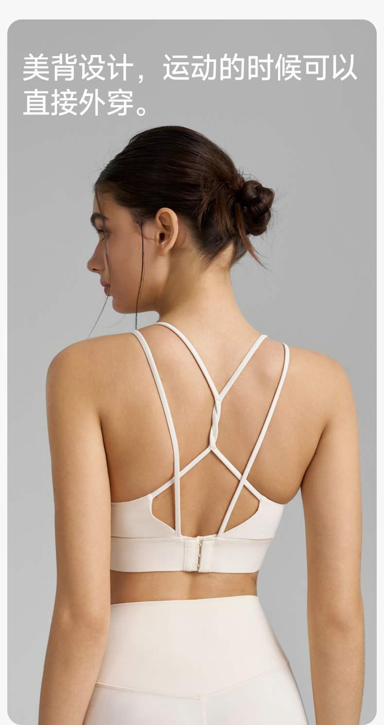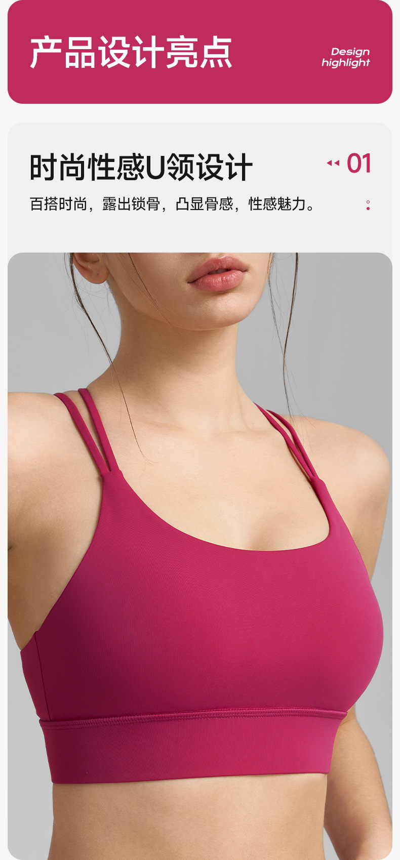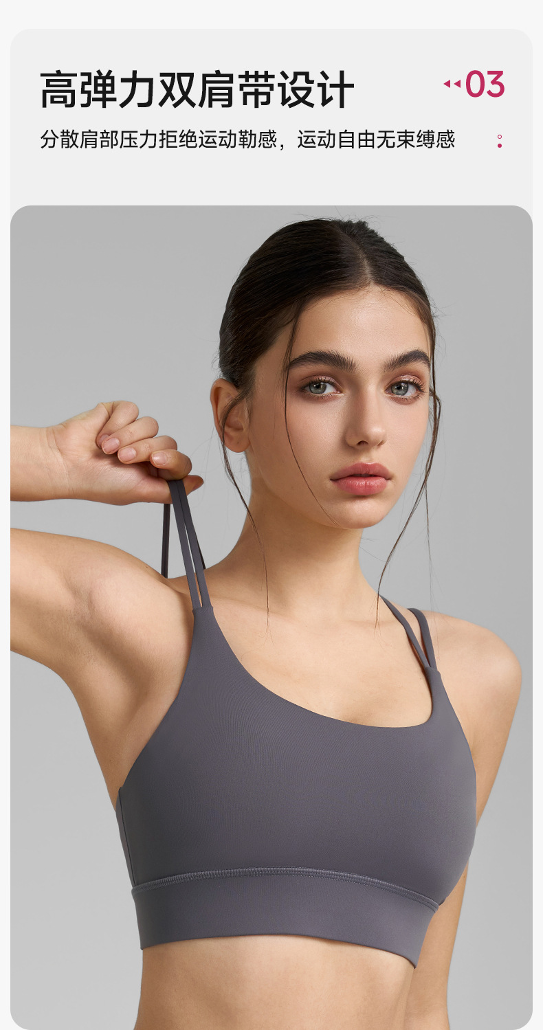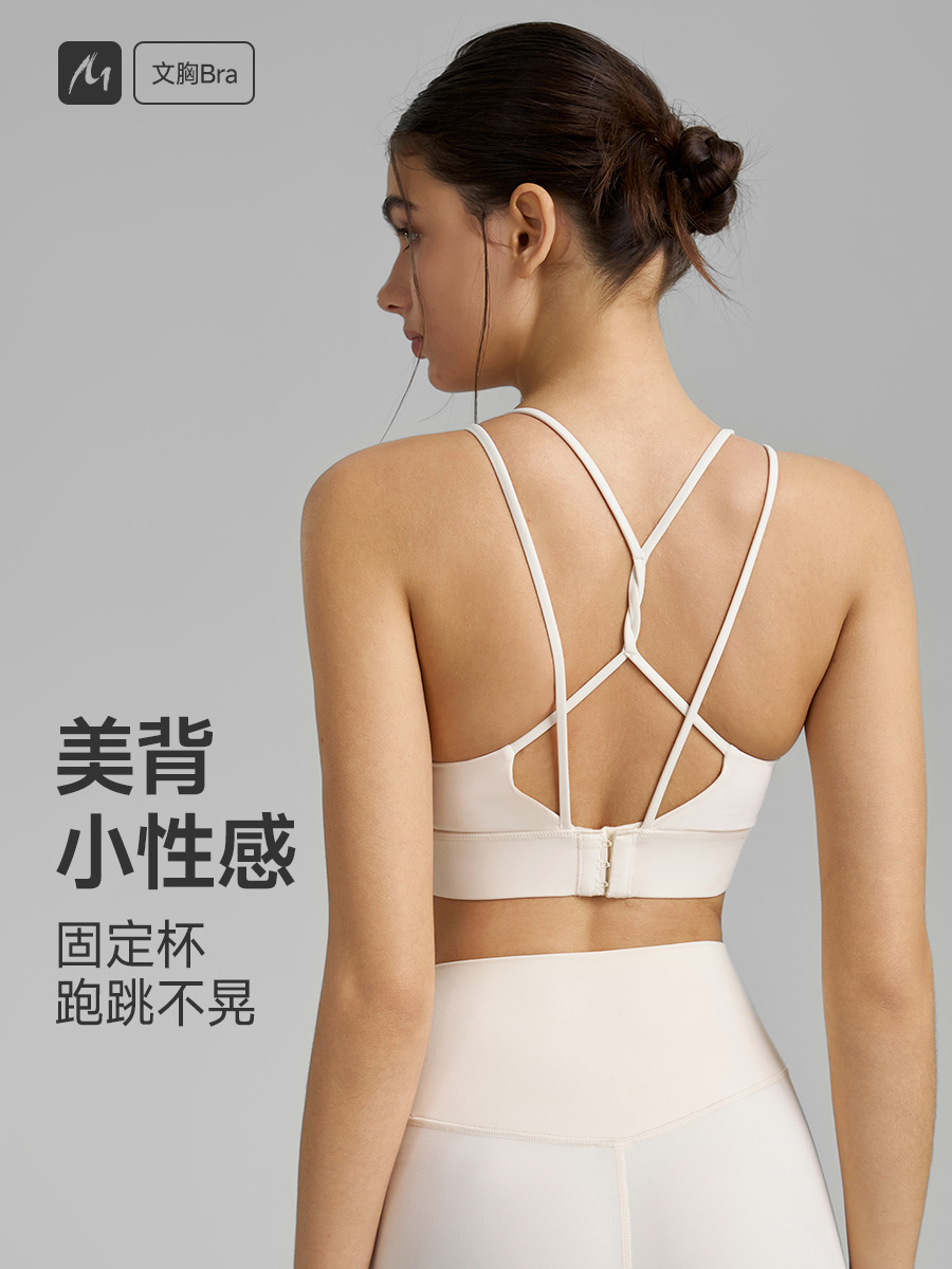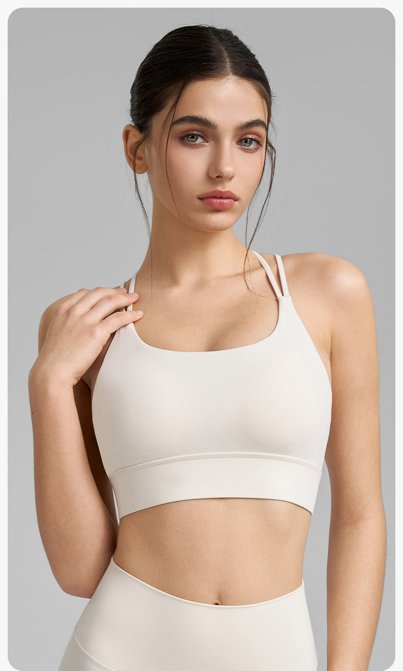 여성용 중간 강도 스포츠 브라 U 넥 더블 숄더 스트랩 요가 조끼 고정 컵 충격 방지 섹시한 아름다운 등 피트니스 브라