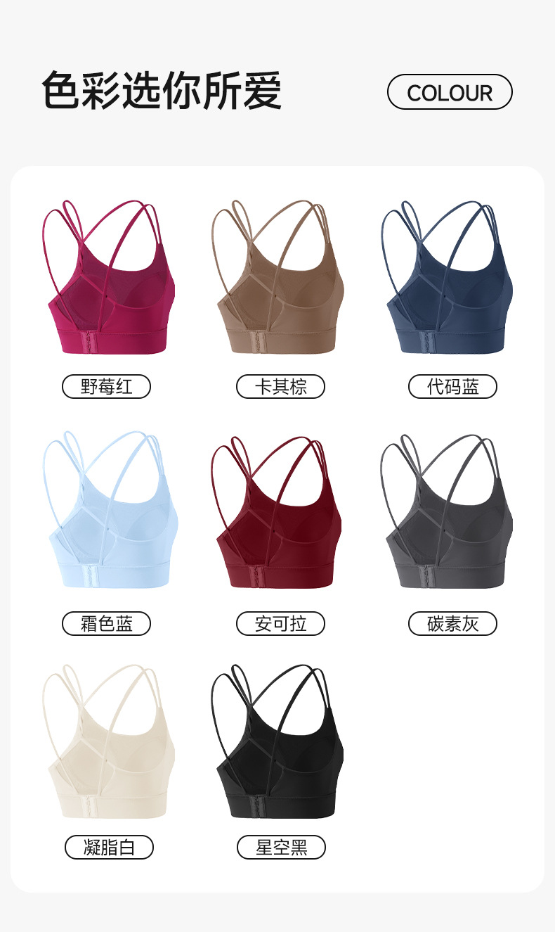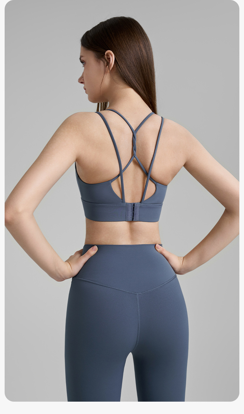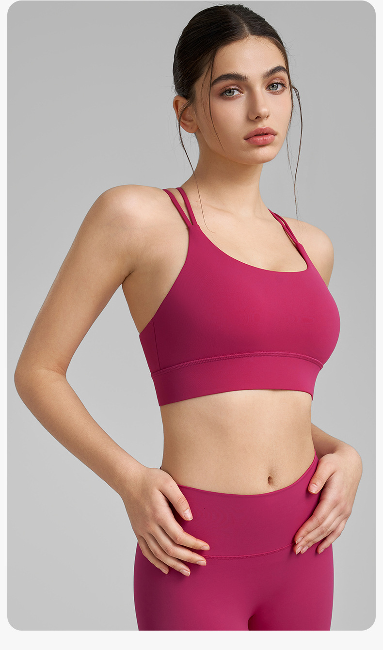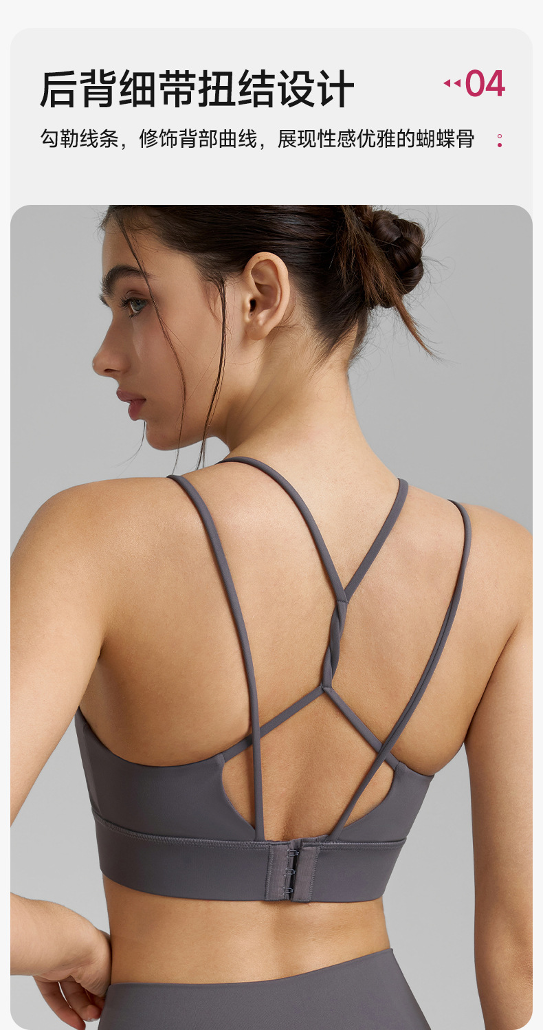 여성용 중간 강도 스포츠 브라 U 넥 더블 숄더 스트랩 요가 조끼 고정 컵 충격 방지 섹시한 아름다운 등 피트니스 브라