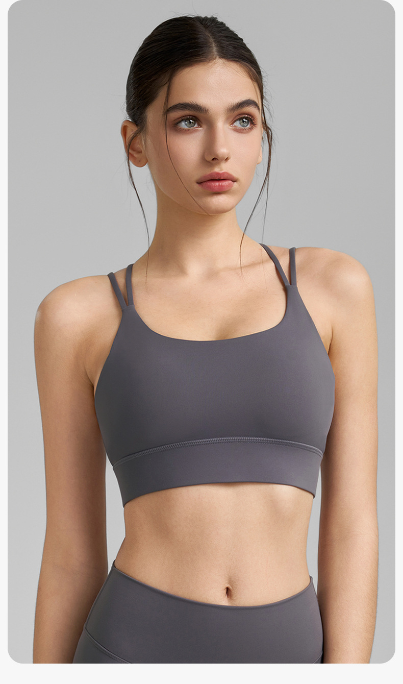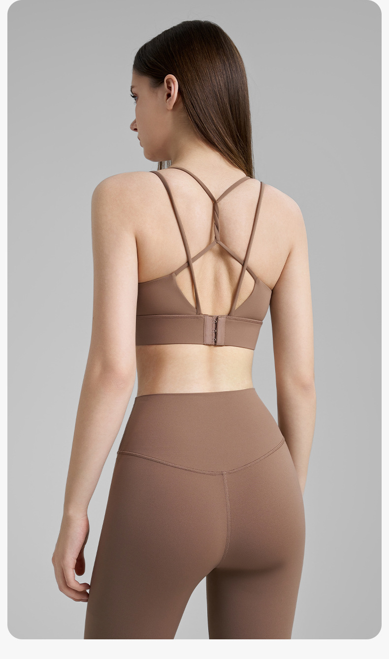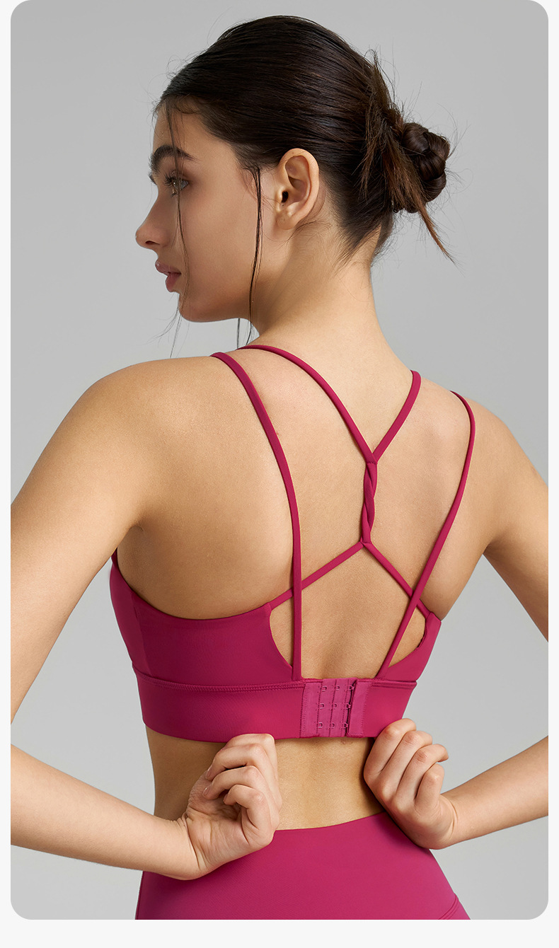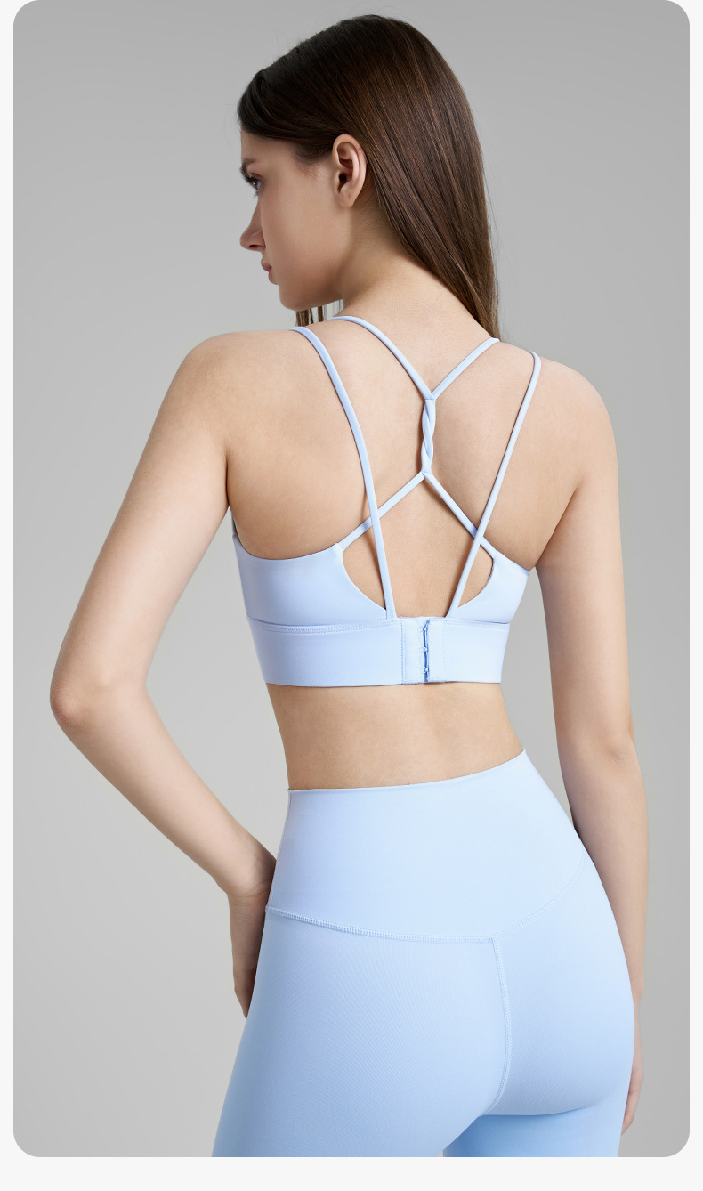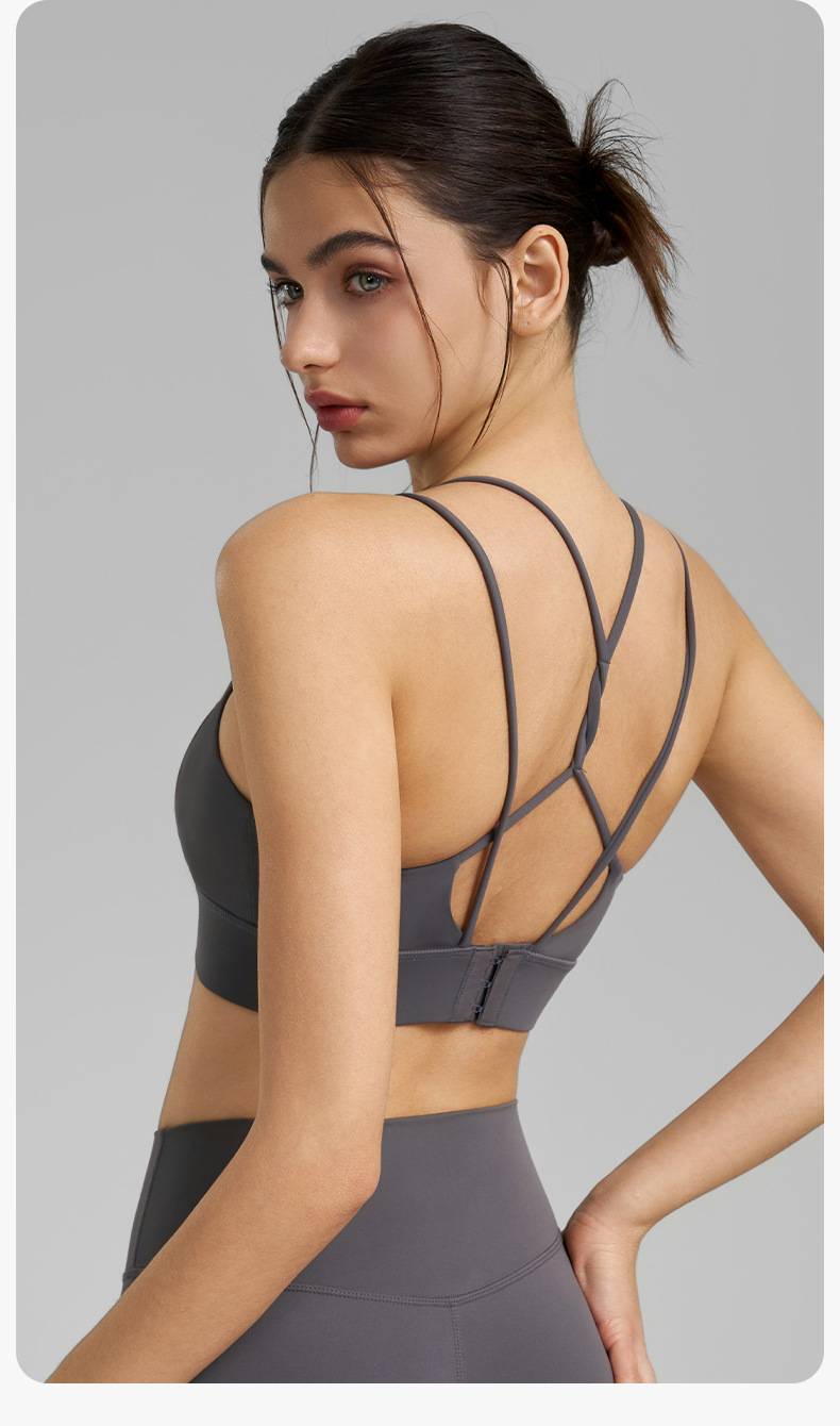 여성용 중간 강도 스포츠 브라 U 넥 더블 숄더 스트랩 요가 조끼 고정 컵 충격 방지 섹시한 아름다운 등 피트니스 브라