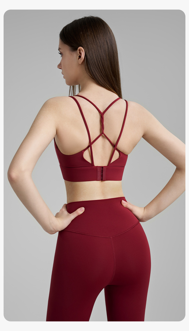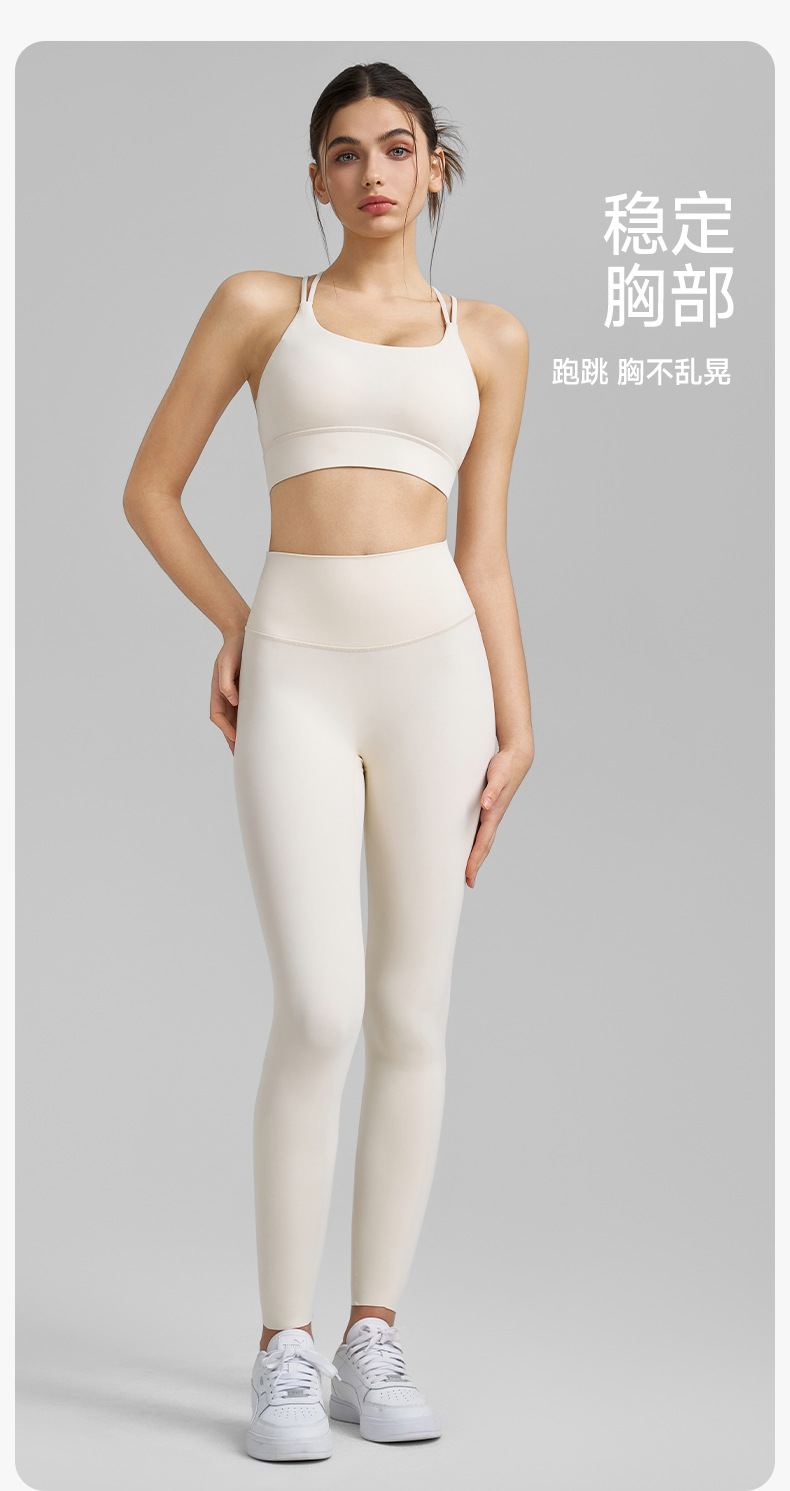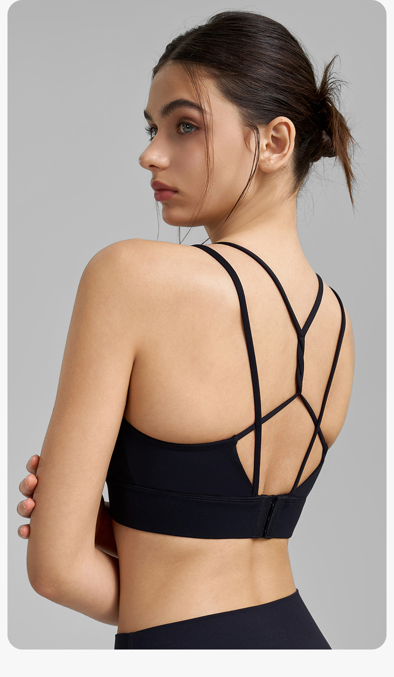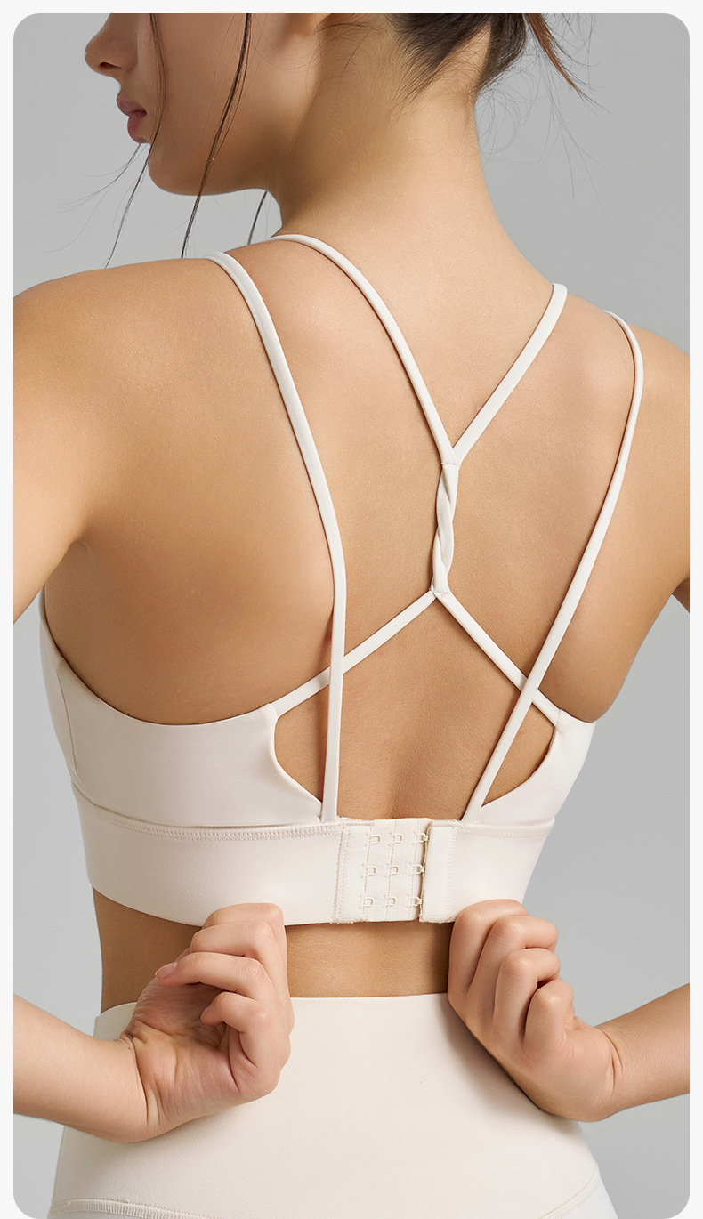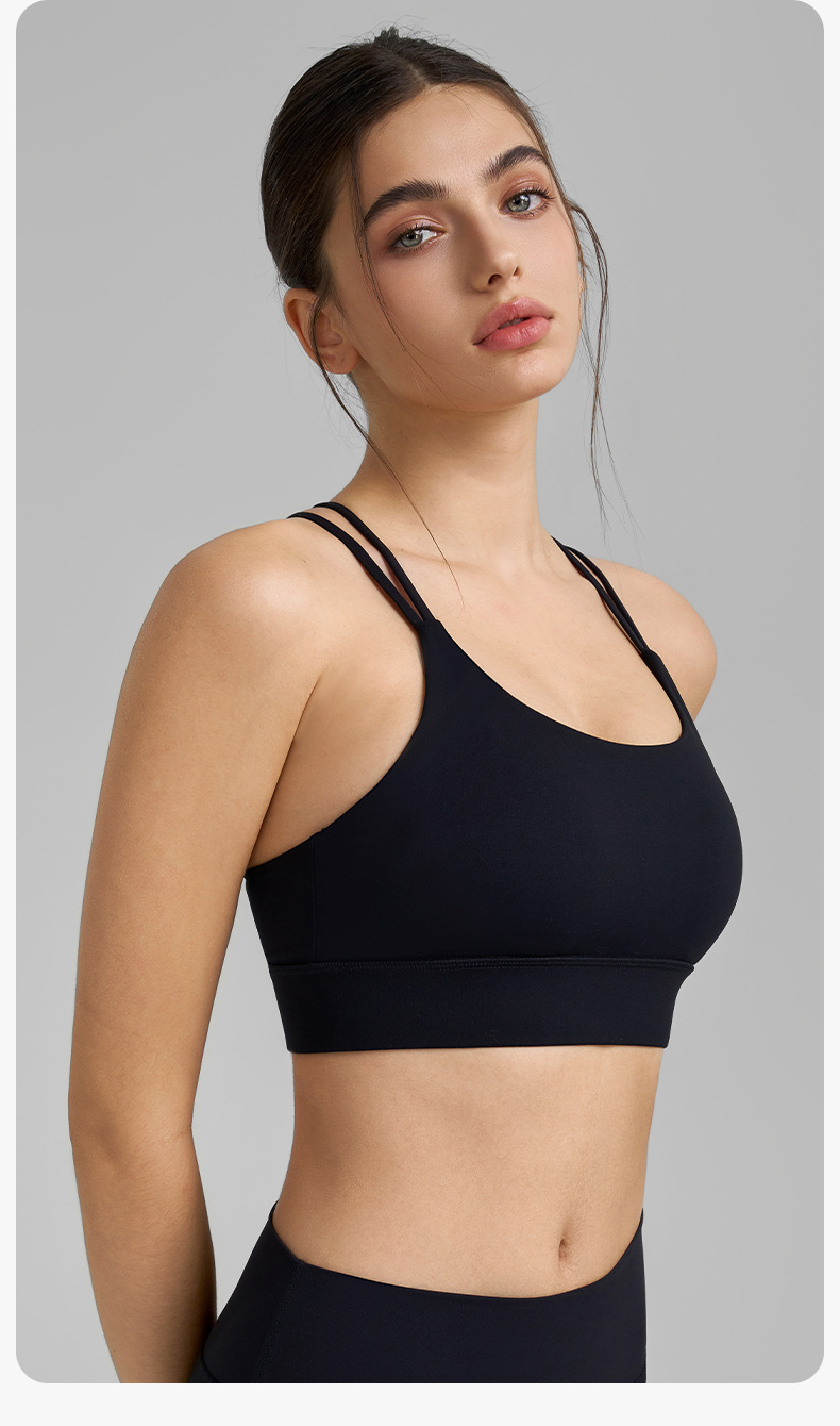 여성용 중간 강도 스포츠 브라 U 넥 더블 숄더 스트랩 요가 조끼 고정 컵 충격 방지 섹시한 아름다운 등 피트니스 브라