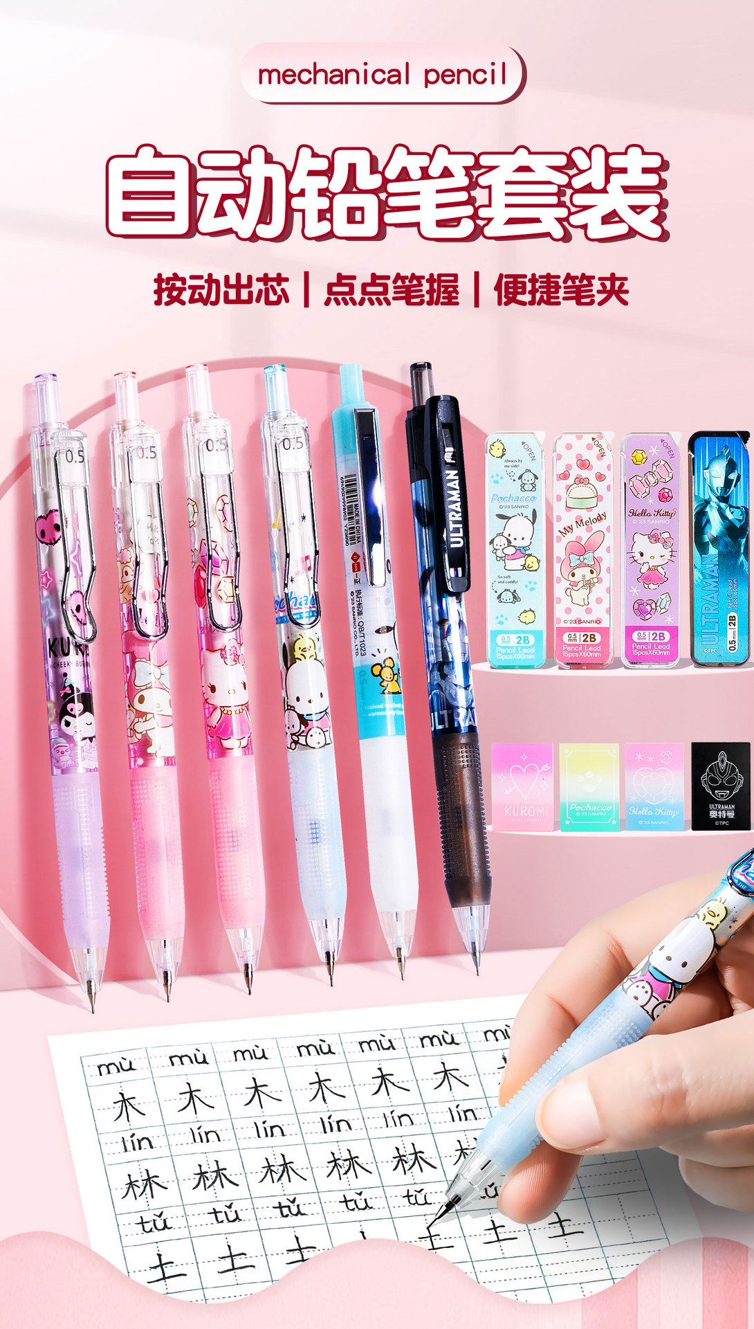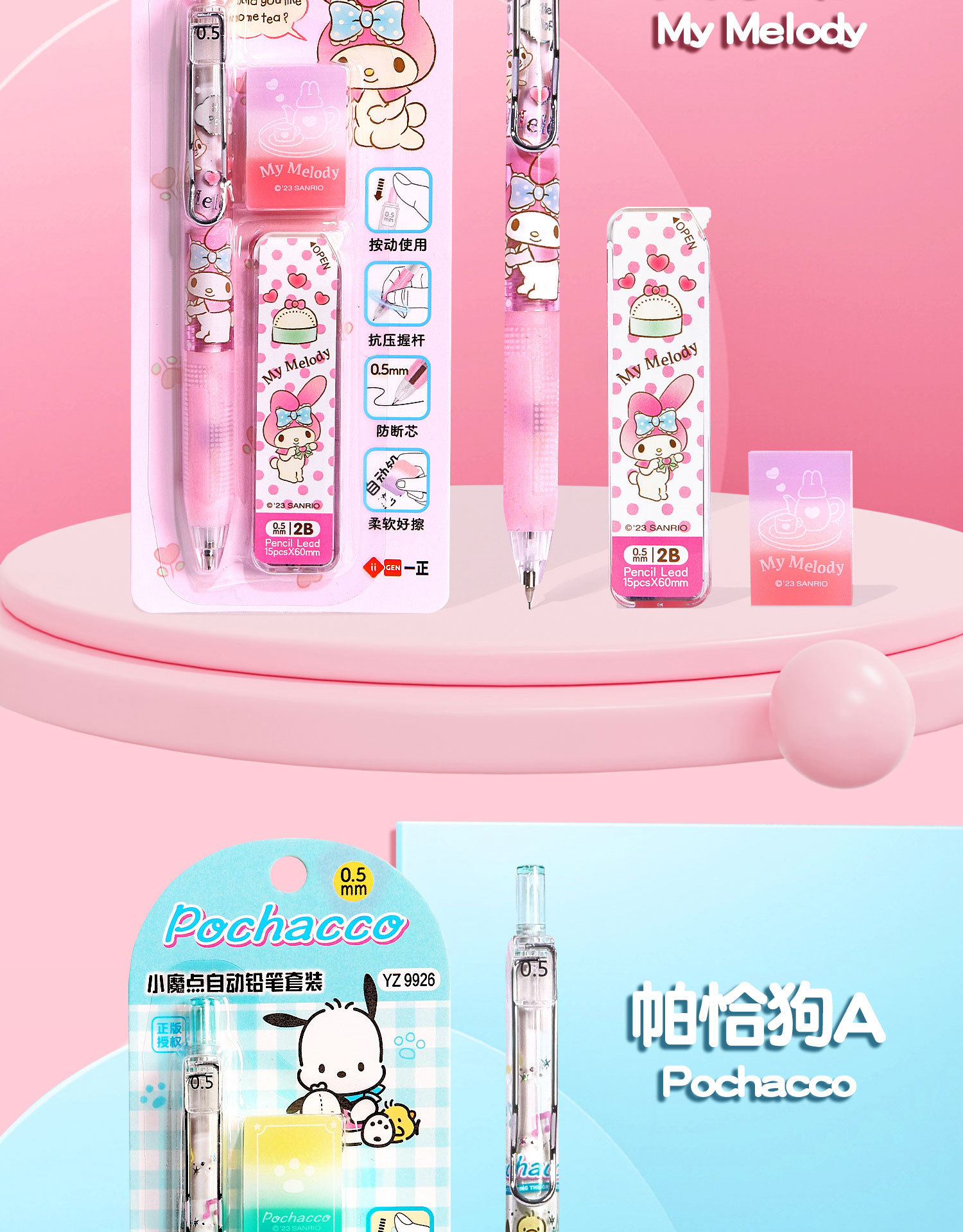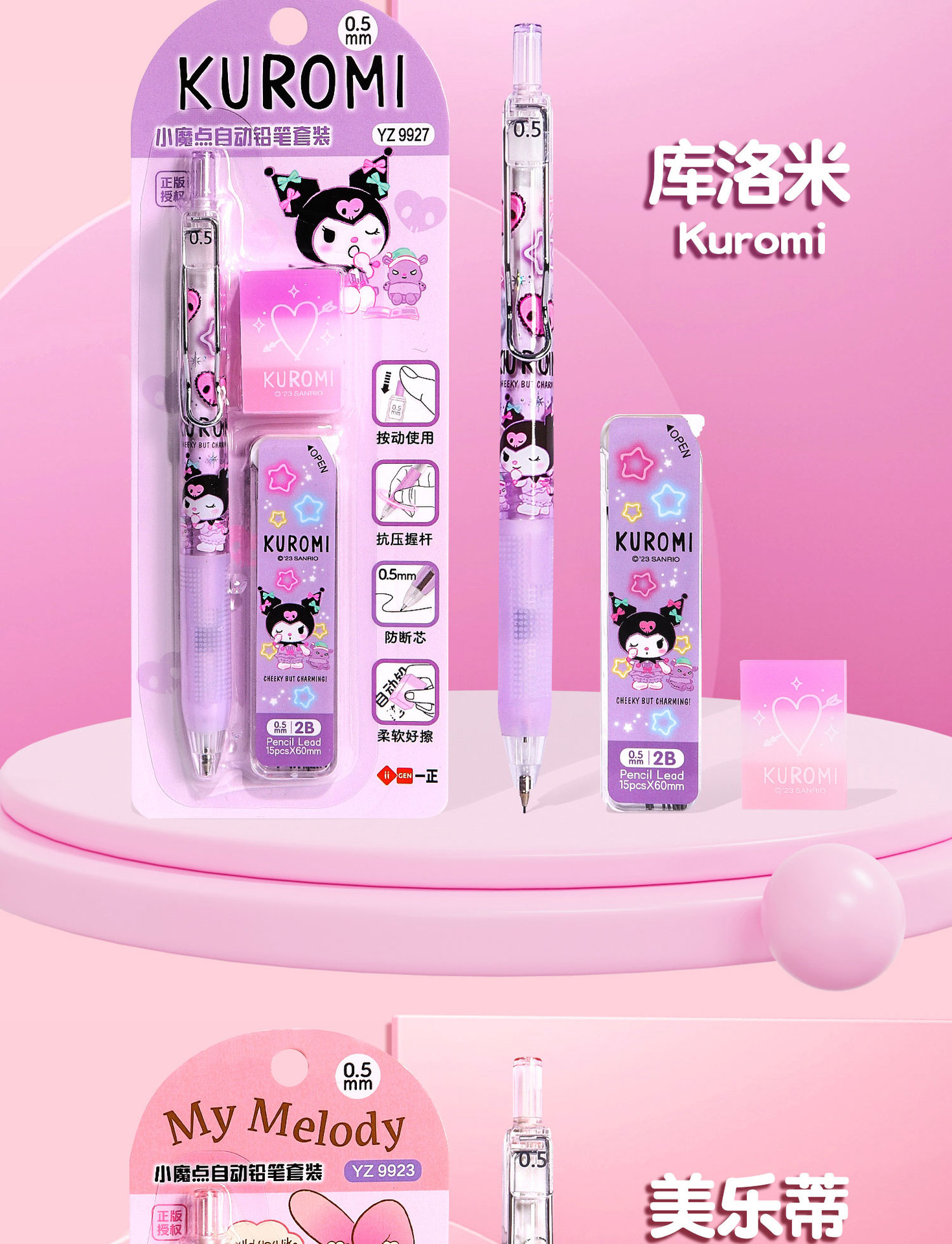 정품 산리오 샤프펜슬 세트 쿠로미 고급 초등학생 0.5MM 샤프펜슬 시나몬독
