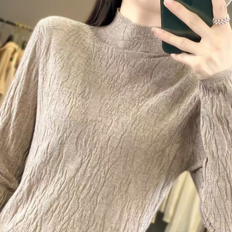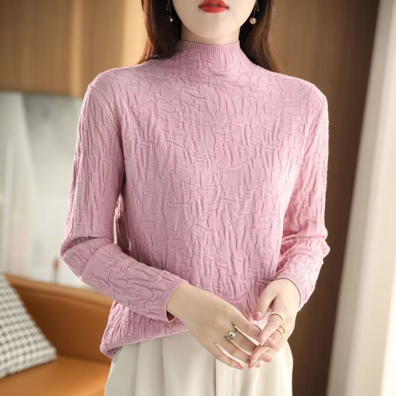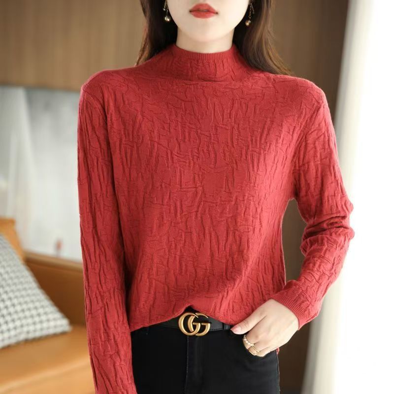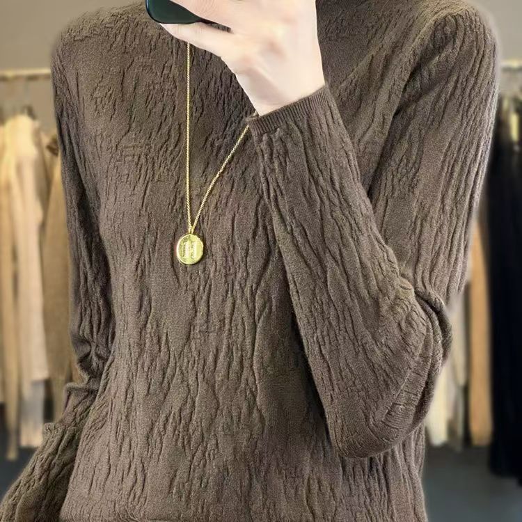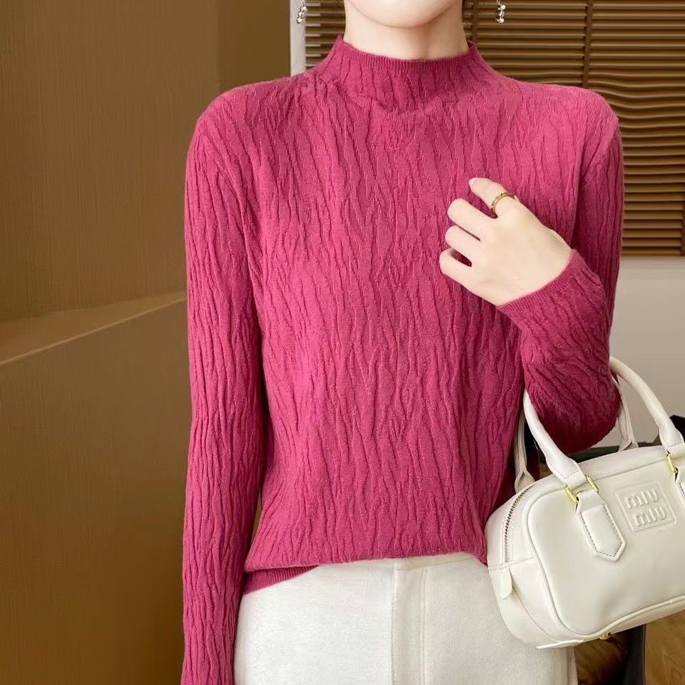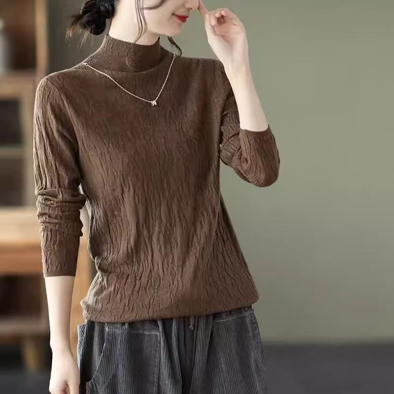 가을 겨울 단색 니트 스웨터, 골지 긴팔 스웨터, 여성용 기본 레이어드 탑, 우아한 통근룩, 라운드넥 레트로 스타일스토어 가기