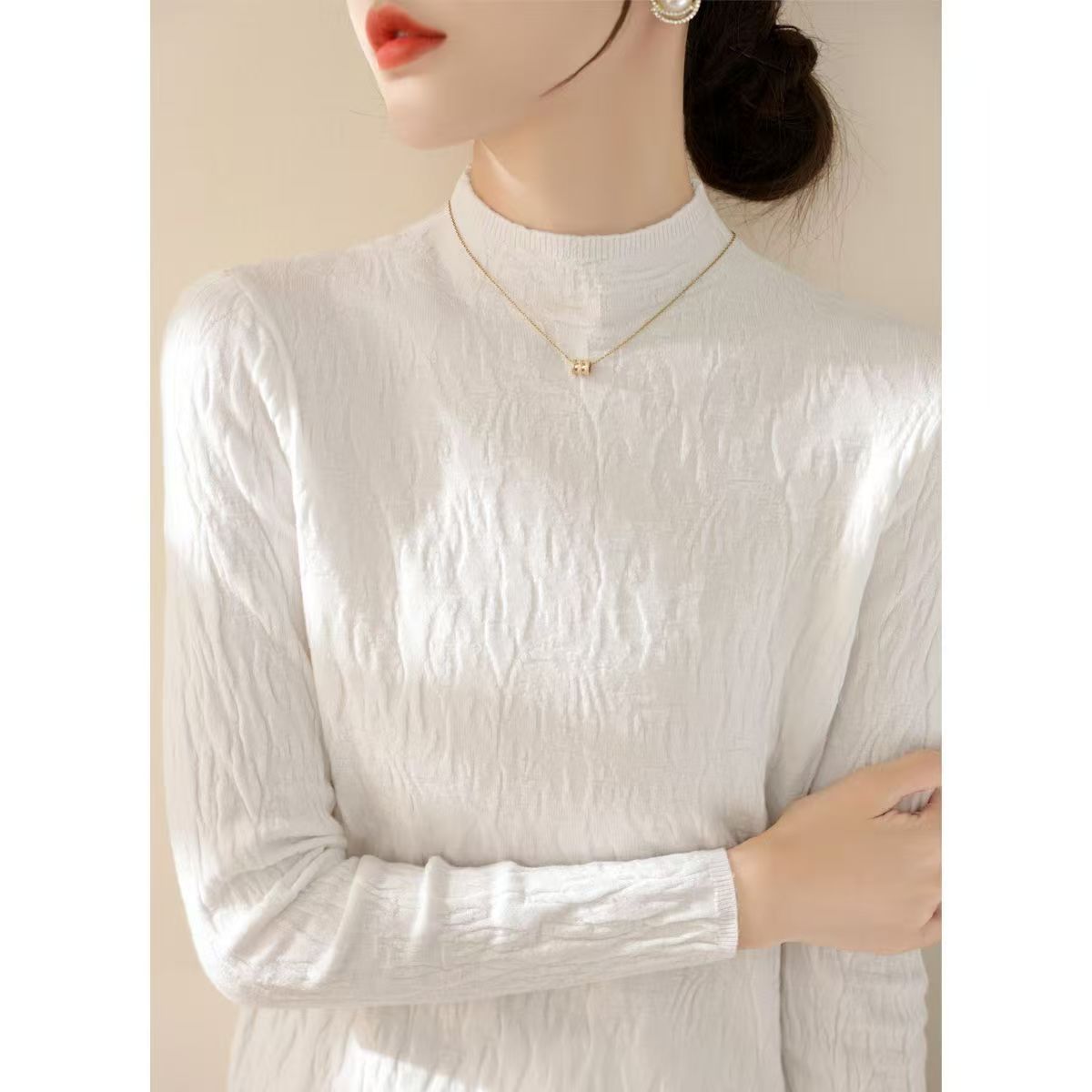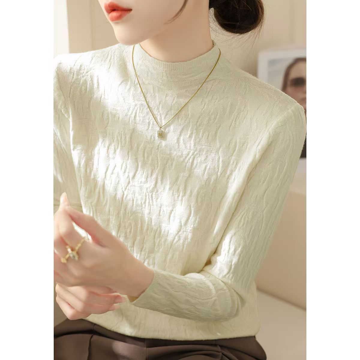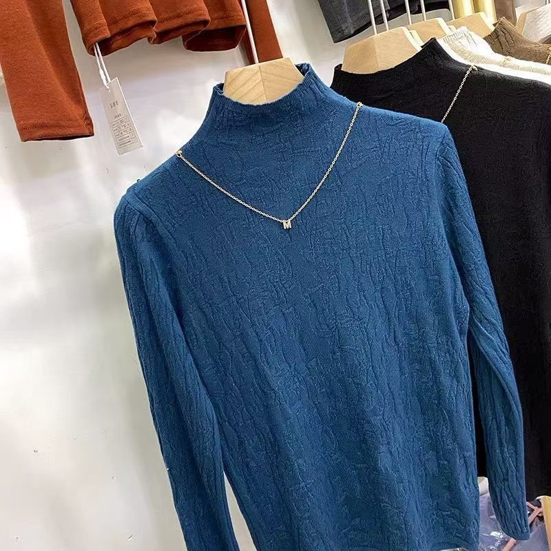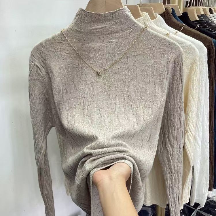 가을 겨울 단색 니트 스웨터, 골지 긴팔 스웨터, 여성용 기본 레이어드 탑, 우아한 통근룩, 라운드넥 레트로 스타일스토어 가기