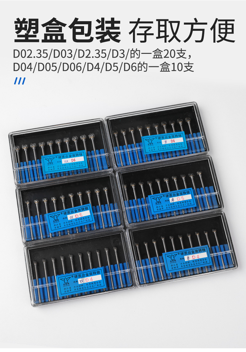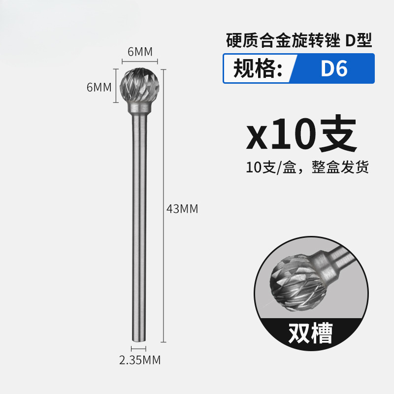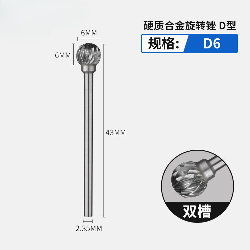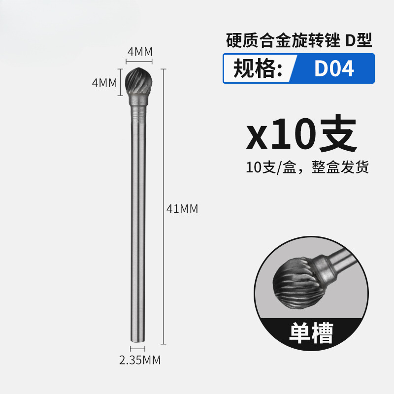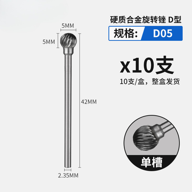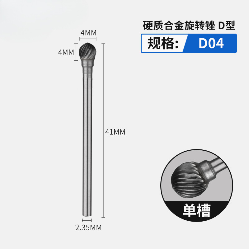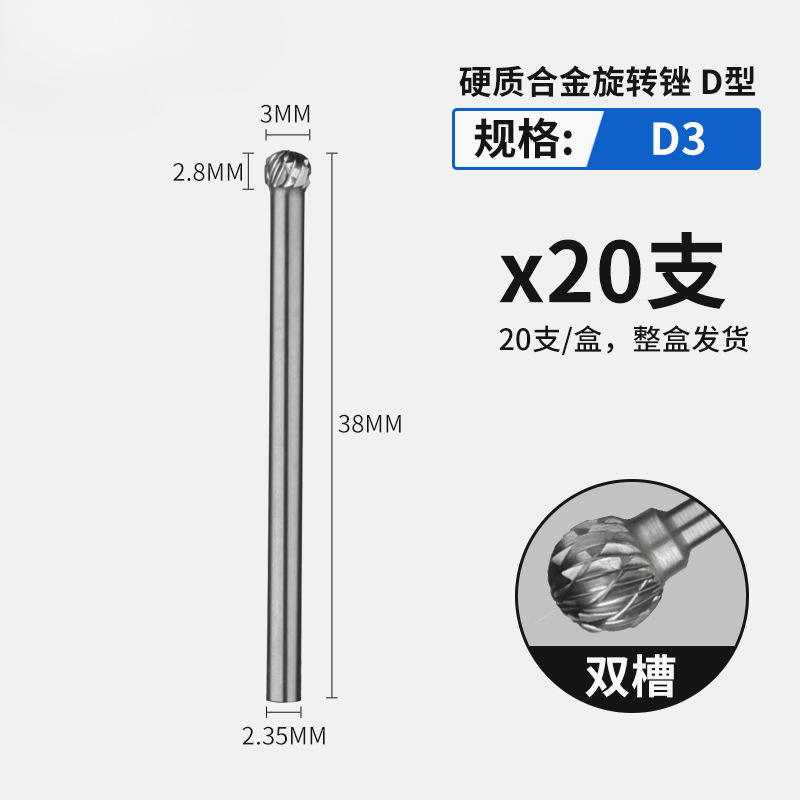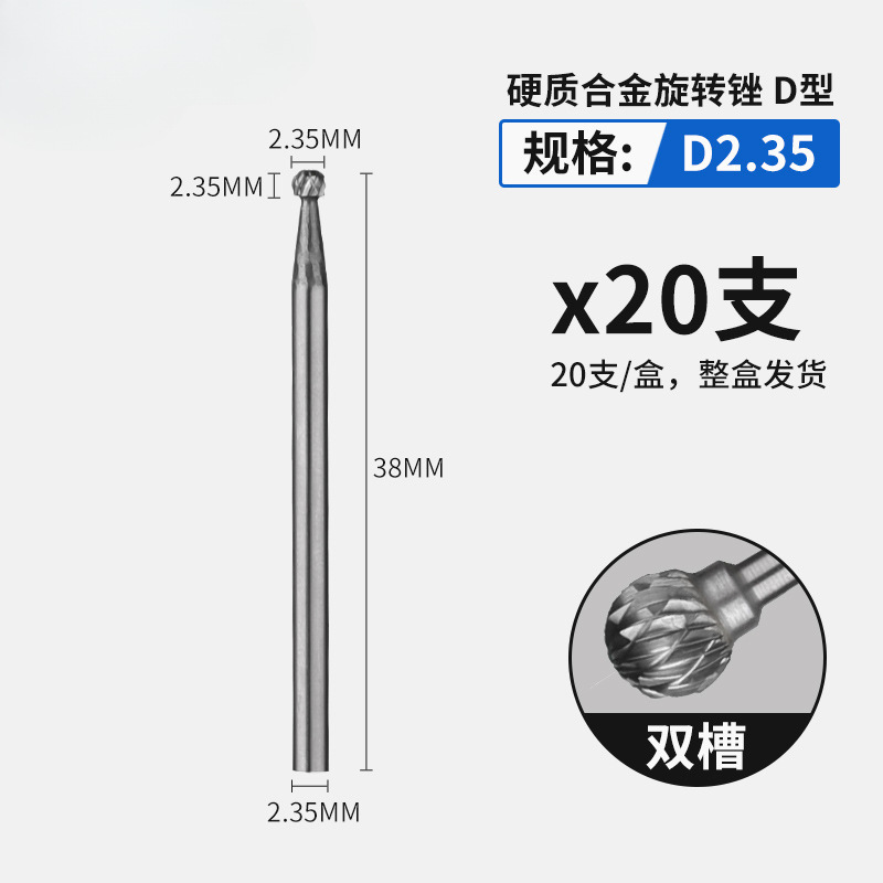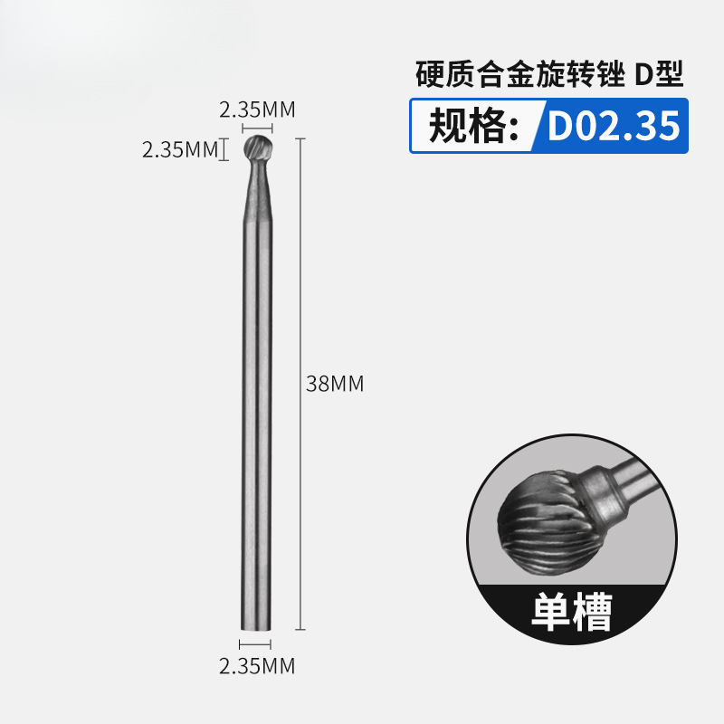 시멘트 카바이드 로터리 파일 테이퍼 라운드 헤드 텅스텐 스틸 연삭 헤드 클램프 핸들 외부 직경 2.35mm D2.35스토어 가기