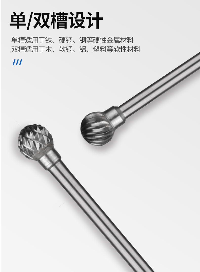 시멘트 카바이드 로터리 파일 테이퍼 라운드 헤드 텅스텐 스틸 연삭 헤드 클램프 핸들 외부 직경 2.35mm D2.35