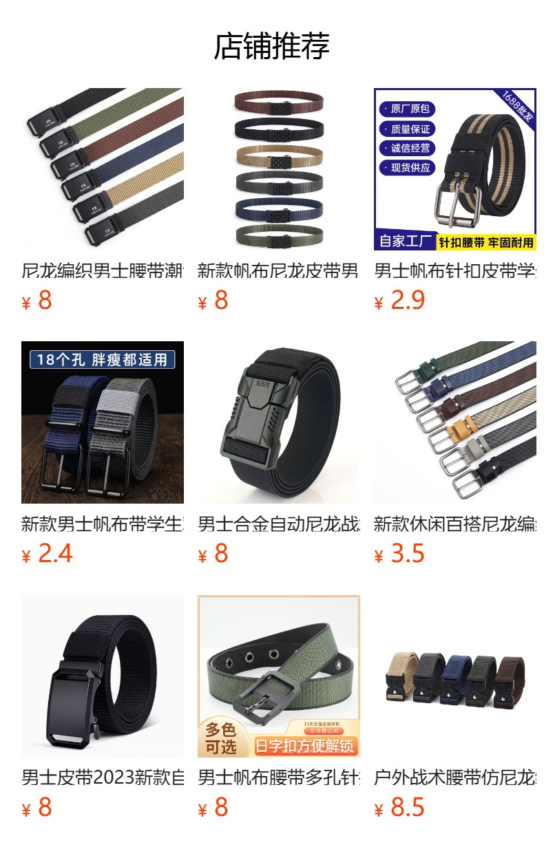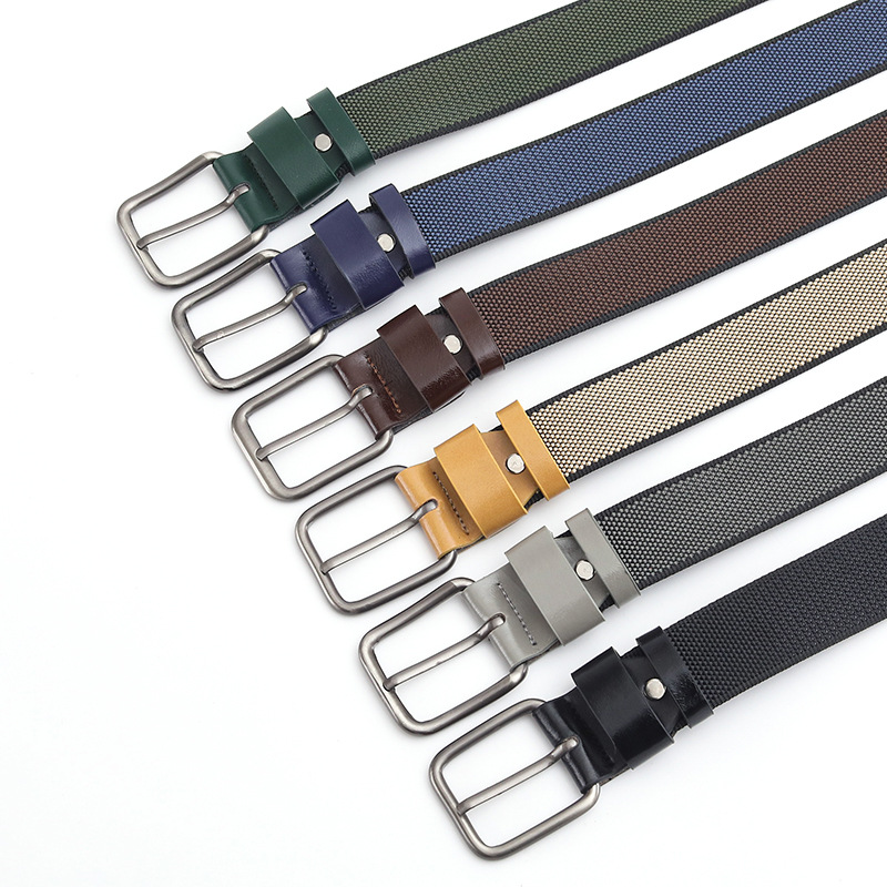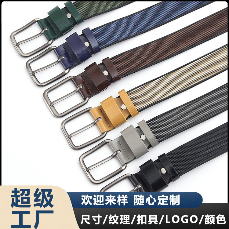 새로운 캐주얼 다목적 나일론 짠 양면 구슬 패턴 PP 핀 버클 벨트 남성용 크로스 보더 특별 확장 벨트 도매스토어 가기