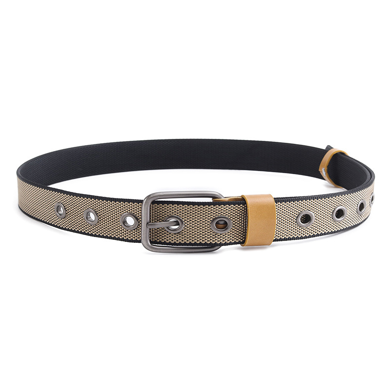 새로운 캐주얼 다목적 나일론 짠 양면 구슬 패턴 PP 핀 버클 벨트 남성용 크로스 보더 특별 확장 벨트 도매