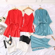 잠옷 제조 업체 도매 인쇄 숙녀 모방 멜빵 느슨한 편안한 레이스 5 피스 홈 의류 속옷 잠옷스토어 가기