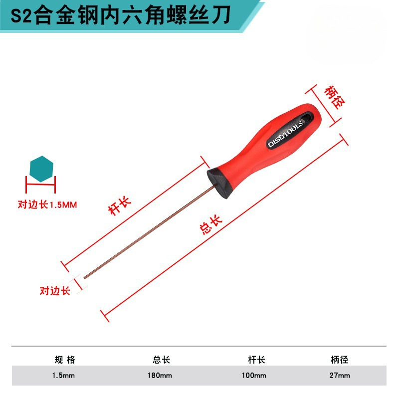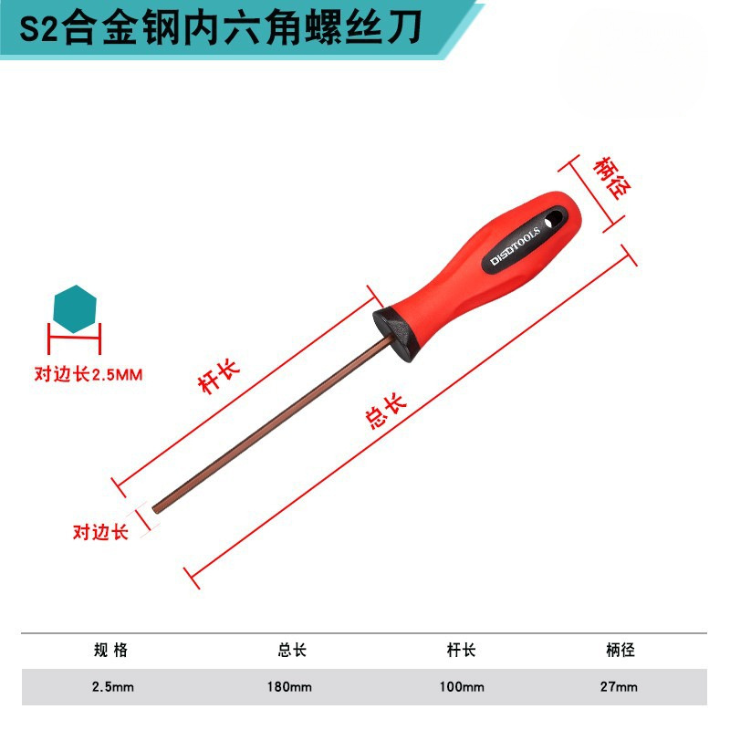 S2 스틸 육각형 소켓 스크루 드라이버 연장 직선 핸들 플랫 헤드 육각형 렌치 스크루 드라이버 1.5/2/2.5/3/4/5/6mm
