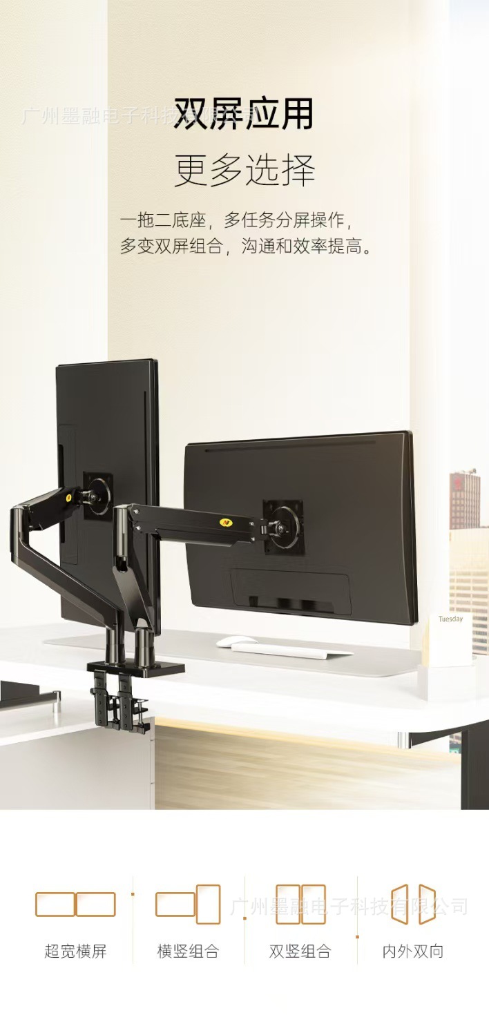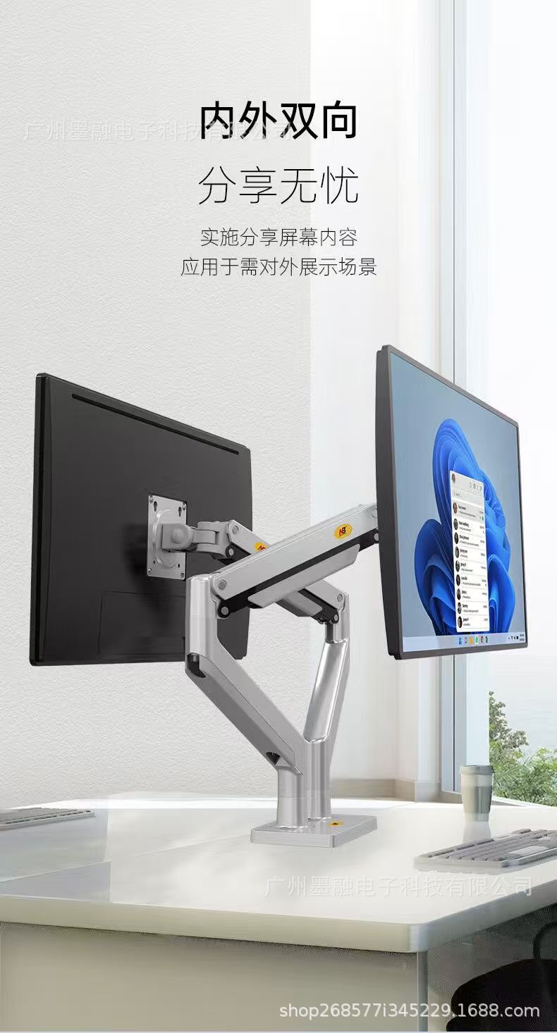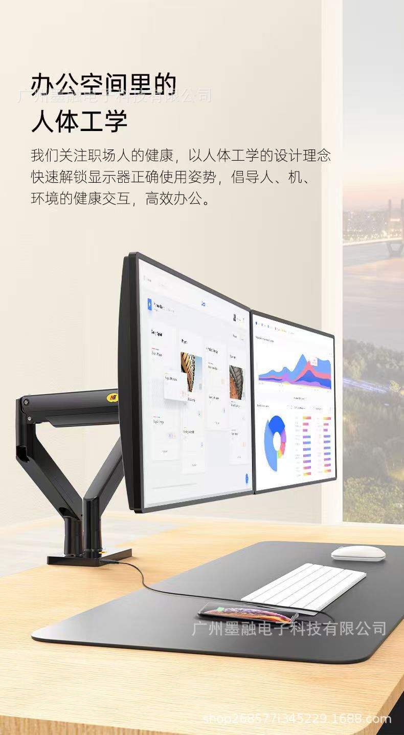 NB G32 듀얼 스크린 디스플레이 브래킷, 더블 암 위아래로 겹쳐진 펀치 프리, 조정 가능한 컴퓨터 화면로드 15KG