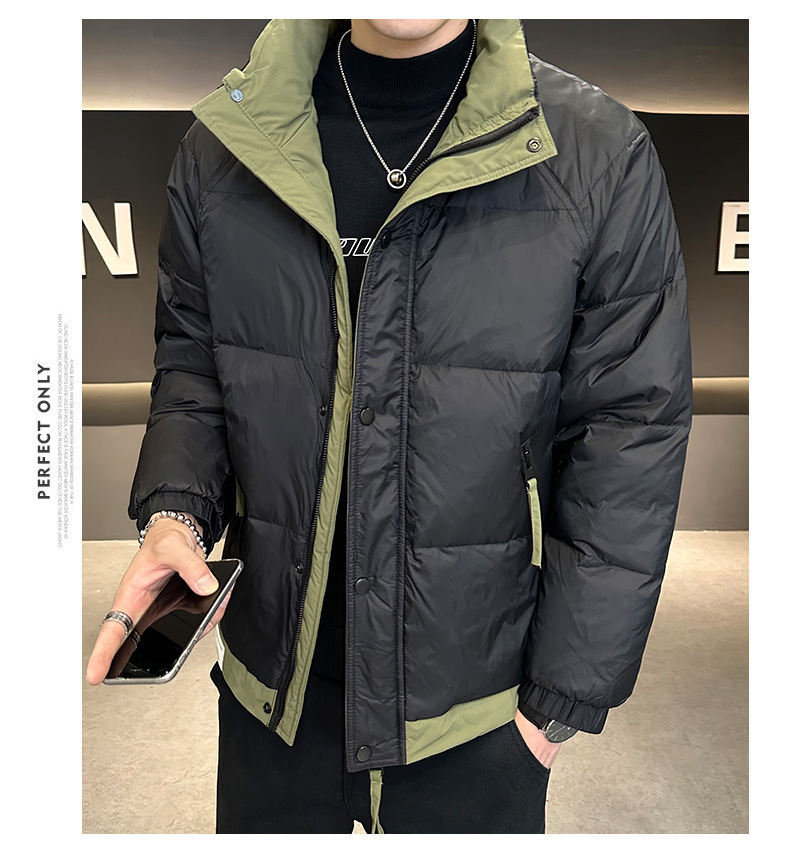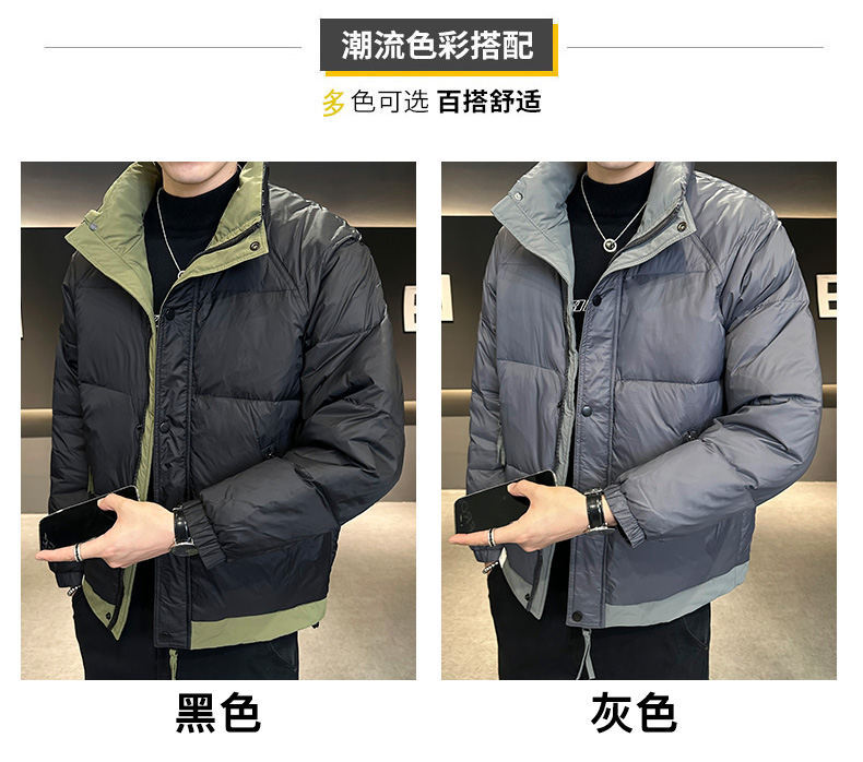 겨울 남자 짧은 재킷 두꺼운 컬러 블록 따뜻한 재킷 수직 칼라 한국 스타일 캐주얼 감기 방지 탑 뉴