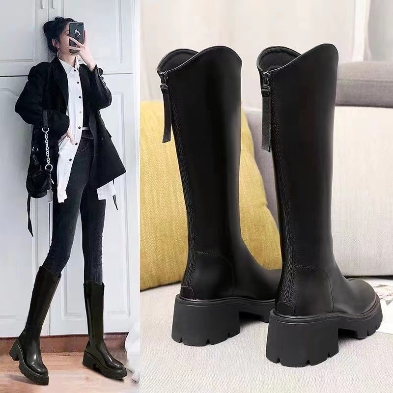 폭발 두꺼운 뒤꿈치 고조 부츠 패션 조커 마틴 부츠 2024 가을과 겨울 새로운 한국 패션 기모 가죽 부츠스토어 가기