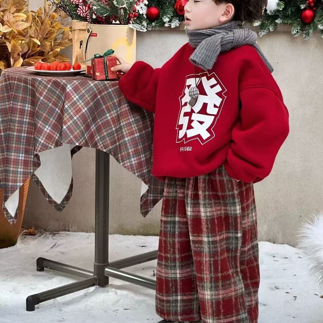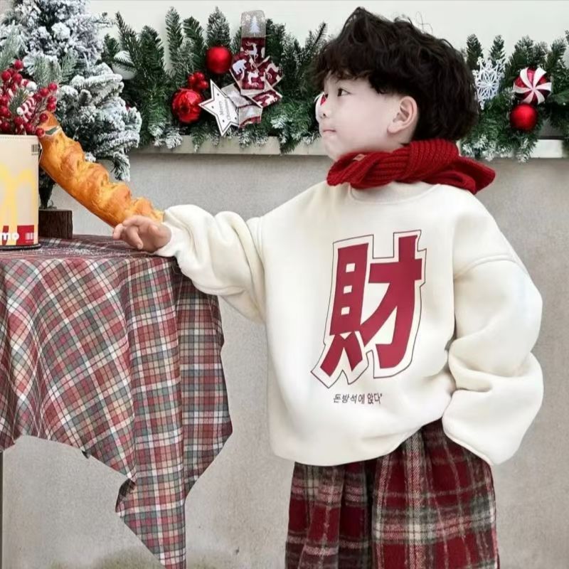 2024 어린이 세트 새로운 가을과 겨울 기모 원피스 벨벳 캐주얼 스웨트 어린이와 어린이를위한 크리스마스 신년 의류스토어 가기