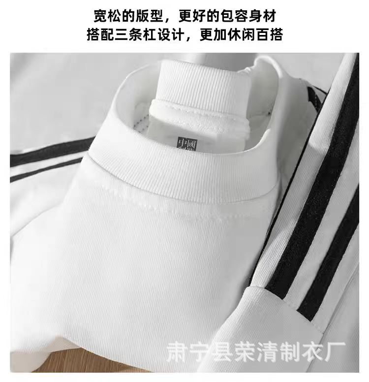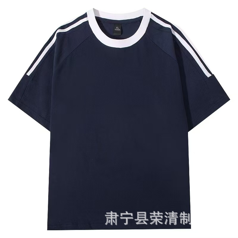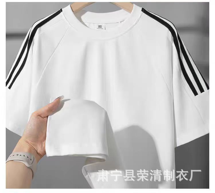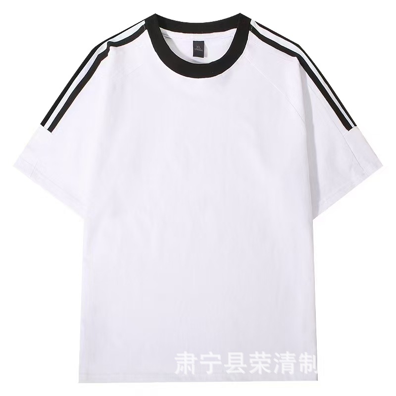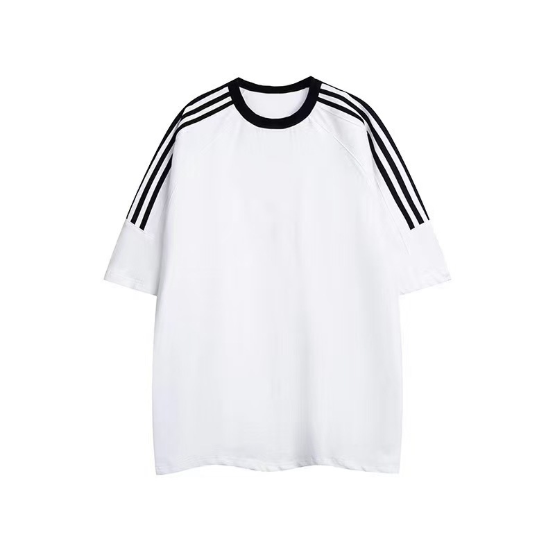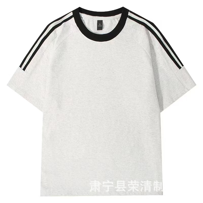 새로운 220g 미국 클래식 3 바 코튼 티셔츠 남성 여름 캐주얼 레트로 느슨한 크루 넥 트렌드 짧은 소매