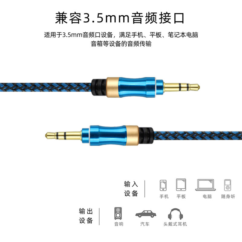 AUX3.5mm 오디오 케이블 남성-남성 이중 헤드폰 휴대폰 차량용 이어폰 스피커 전용 브레이드 연결 케이블 디지털